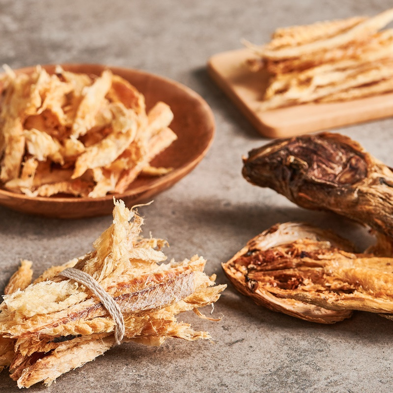 겨우내 바람 잘 드는 덕장에서 말린 황태. 그 짭조름한 것이 보통은 술안주라는 것도 모르고, 작은 손으로 가시와 껍질 야무지게 발라 장에 콕콕 찍어 먹으면, 곧바로 어린 얼굴이 땡땡 붓도록 짰다. 그래도 그 맛이 좋았다. 감칠맛이 고루 올라오는 짭짤함에 질겅질겅 한 식감도 좋아, 다 뜯어먹고 나면 너덜너덜 결국 누더기가 된 황태. 마지막엔 마당서 놀던 누렁이 차지였던 황태.
