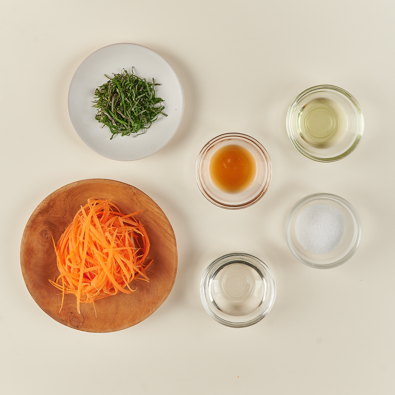 2. 라페 양념을 섞은 후 채 썬 당근과 깻잎을 함께 버무려 상온에서 10분간 절이면 완성!