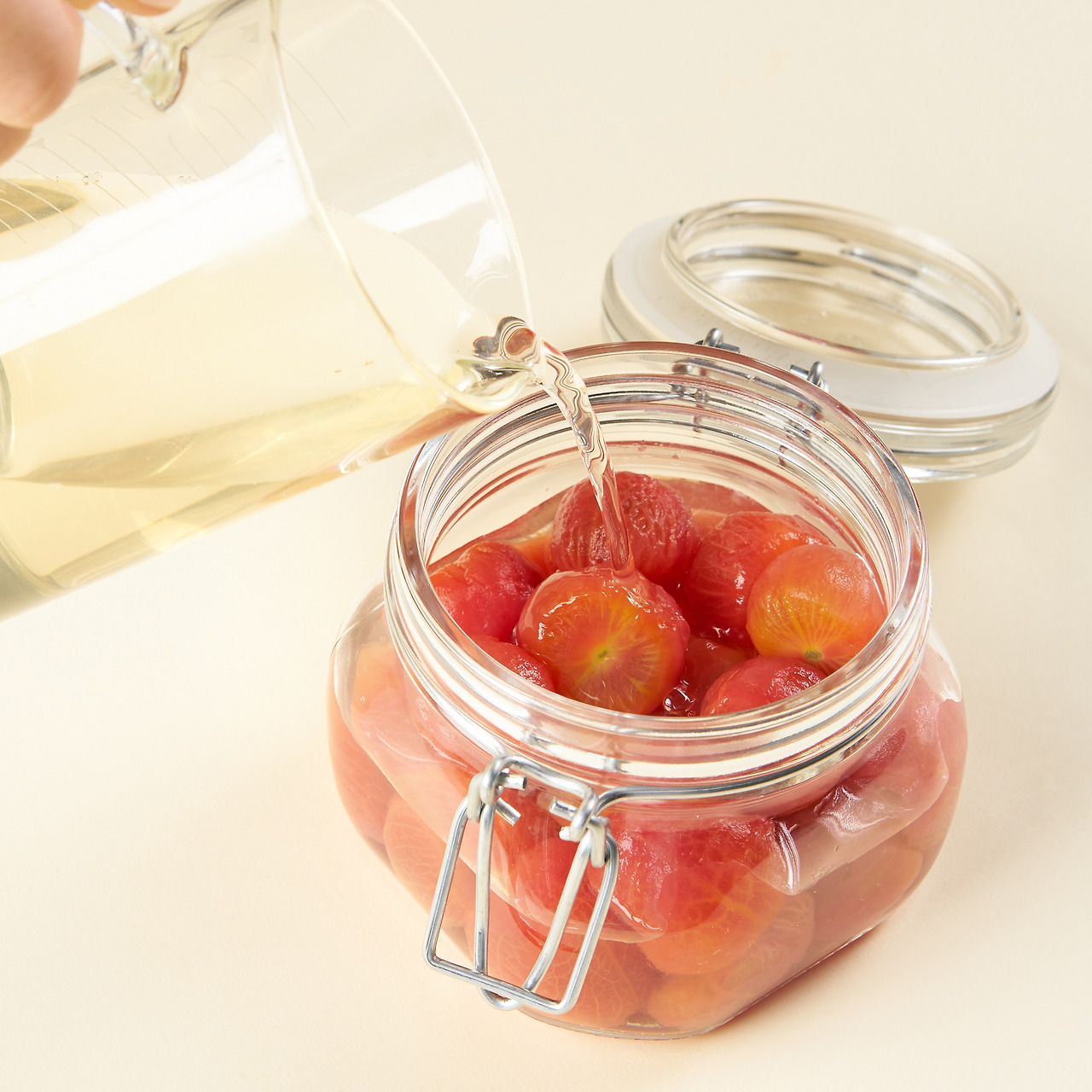 3. 열탕소독한 용기에 1)의 방울토마토와 2)의 피클소스를 함께 넣고 냉장고에서 약 1시간 절여주면 완성!