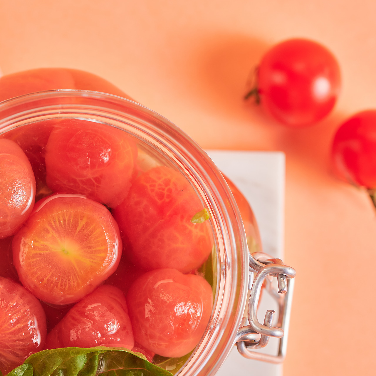 요맘때만 되면 생각나는 것이 있다. 알알이 붉게 물든 방울토마토를 새콤하게 절여놓은 토마토 피클이 바로 그것. 냉장고에 들어앉은 묘하게 빨간 병들을 지켜보노라면 은근하게 흐뭇하다. 꺼내 먹을 때는 툭툭- 바질 잎 뜯어 얹고 같이 즐기면 뭉근하게 피어나는 토마토와 바질향의 조화가 굉장하다. 또 묵직한 요리들과 함께 먹어주면 오늘만큼은 살도 안 찔 것 같은 느낌적인 느낌! 항상 이맘때쯤 요 토마토 피클이 떠오르는 건, 감사한 분들께 직접 만들어 선물하기도 딱 좋기 때문. 갓 싱싱한 5월 토마토의 상큼한 맛을 고스란히 담은 저장음식. 만들어서 나만 먹기엔 너무 아깝다.