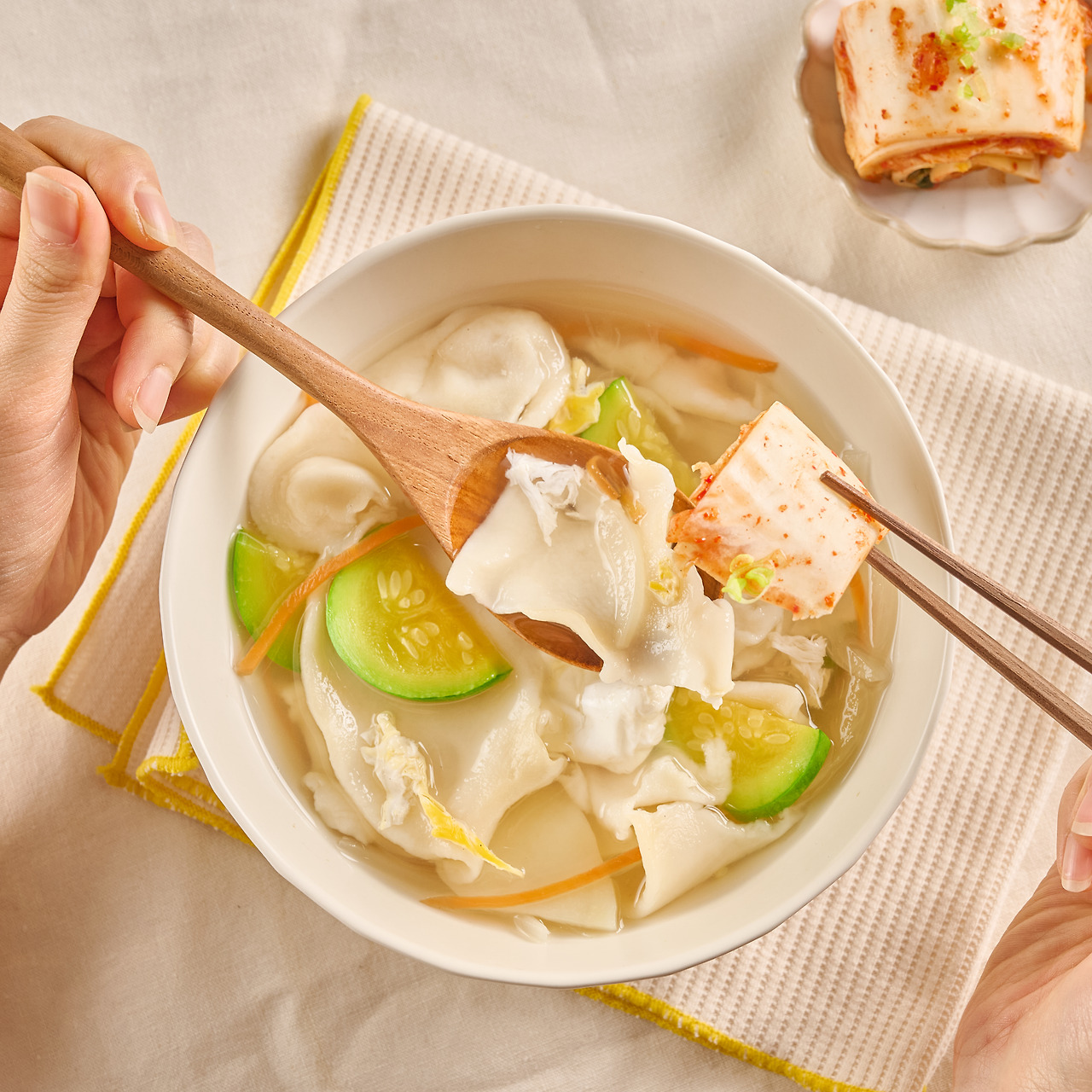 TIP. 수제비 만들기? 중력분 1컵(100g), 물 5스푼(50g), 연두순 1스푼(10g), 포도씨유 1스푼(10g)을 넣고 여러 번 치대 반죽해 주고 냉장고에서 30분 숙성하여 사용하면 더 쫀득!