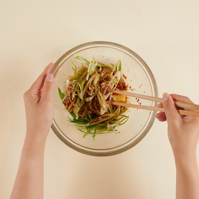 6. (선택) 손질 파와 파채 양념을 버무려 파닭전에 곁들이면 더 맛있어요!