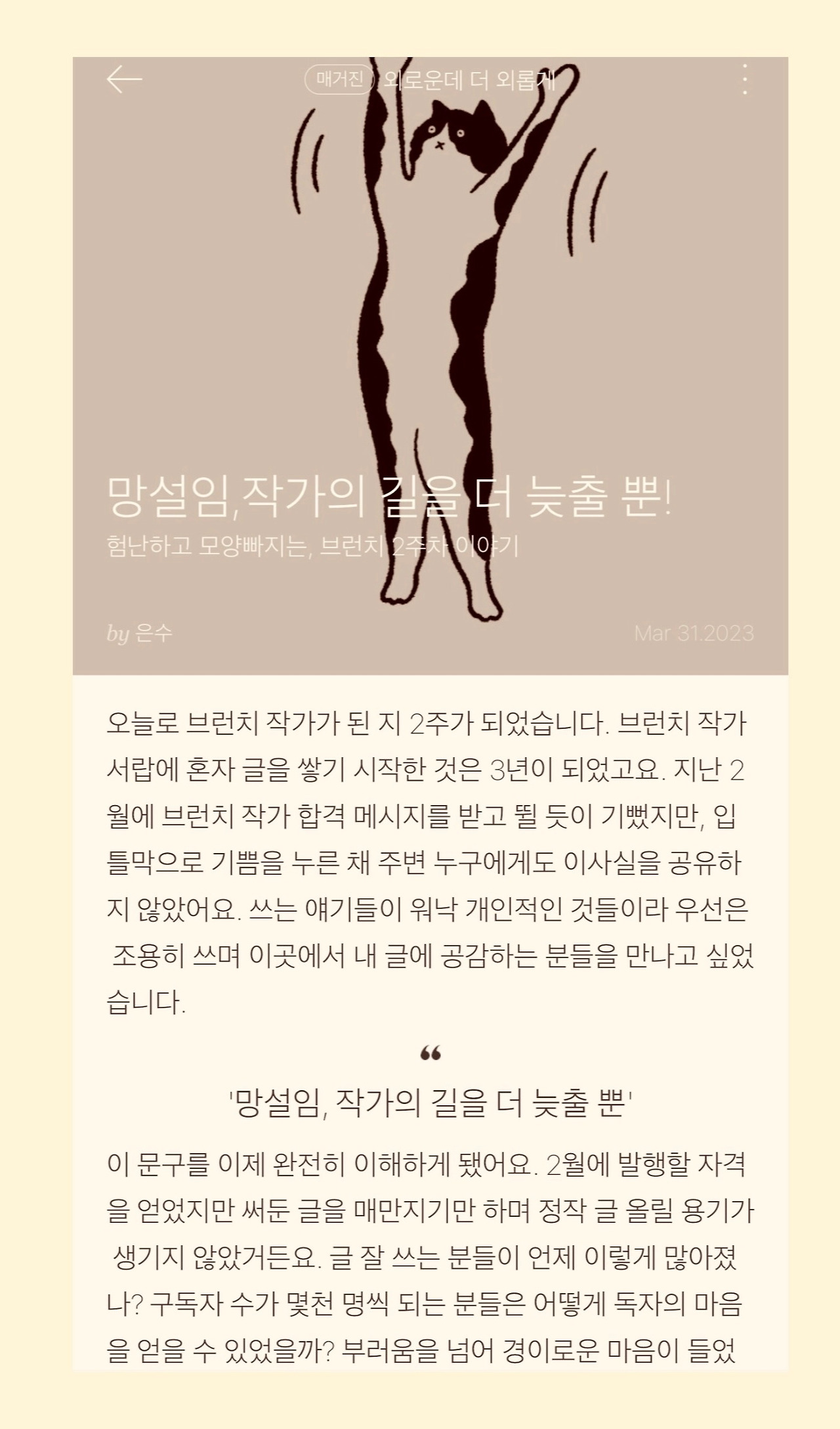 정확히 3주 전에 '망설임, 작가의 길을 늦출 뿐!'에