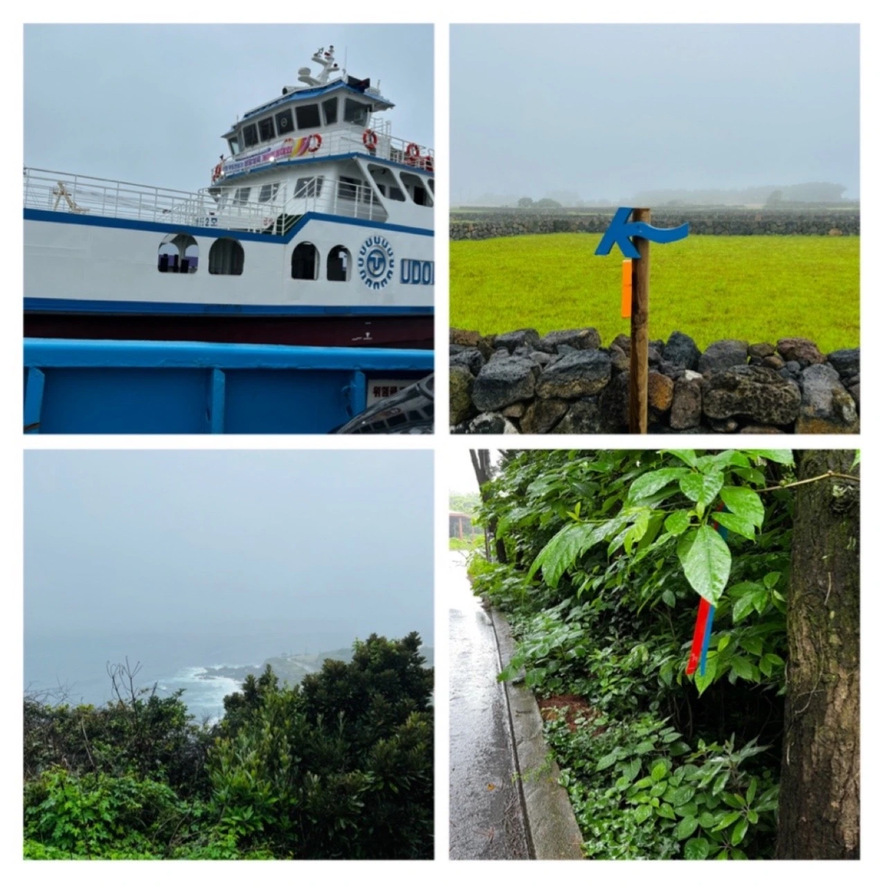 올레길 (우도 1-1 ) 코스를 걷고 우도에서 1박을 할 예정이다. 오후 5시, 마지막 배가 관광객들을 싣고 떠난 뒤 고요해진 섬을 느껴 볼 생각이었다. 물론 계획을 세울 때만 해도 비를 쫄딱 맞고 걷게 될 줄을 몰랐지만, 인생은 조금씩 우리의 상상과 기대를 빗나가지 않는가!