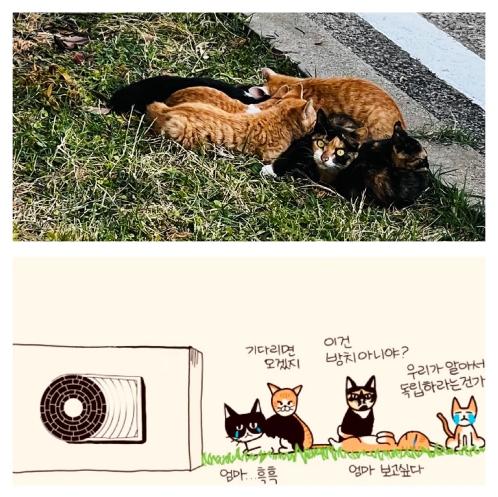 우리가 별 걱정을 다한 것과 달리 어미냥은 새끼의 독립이 끝나자마자 우리 집 베란다 실외기 위에 올라와 애타게 울기 시작했다.