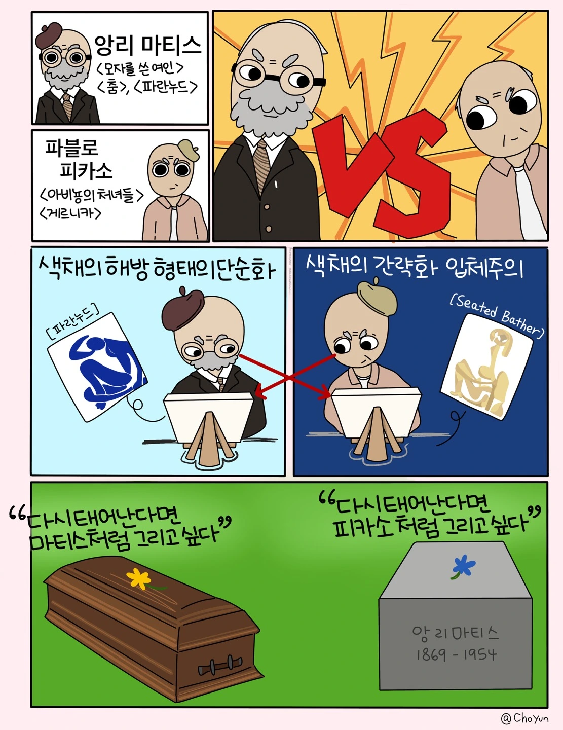 아이는 읽고 들은 이야기에 자기 생각이나 질문을 덧붙인 감상문 종류의 글을 메일로 보냈는데, 기대 이상으로 흥미로운 내용이 많았다. 아이가 ' 앙리 마티스'와 '파블로 피카소'의 경쟁을 소개하며 그에 관한 소감을 보냈을 때, 흥미로웠던 것은 하필, 학교라는 공동체를 벗어난 아이가 보낸 화두가 ‘경쟁’이었기 때문이다.