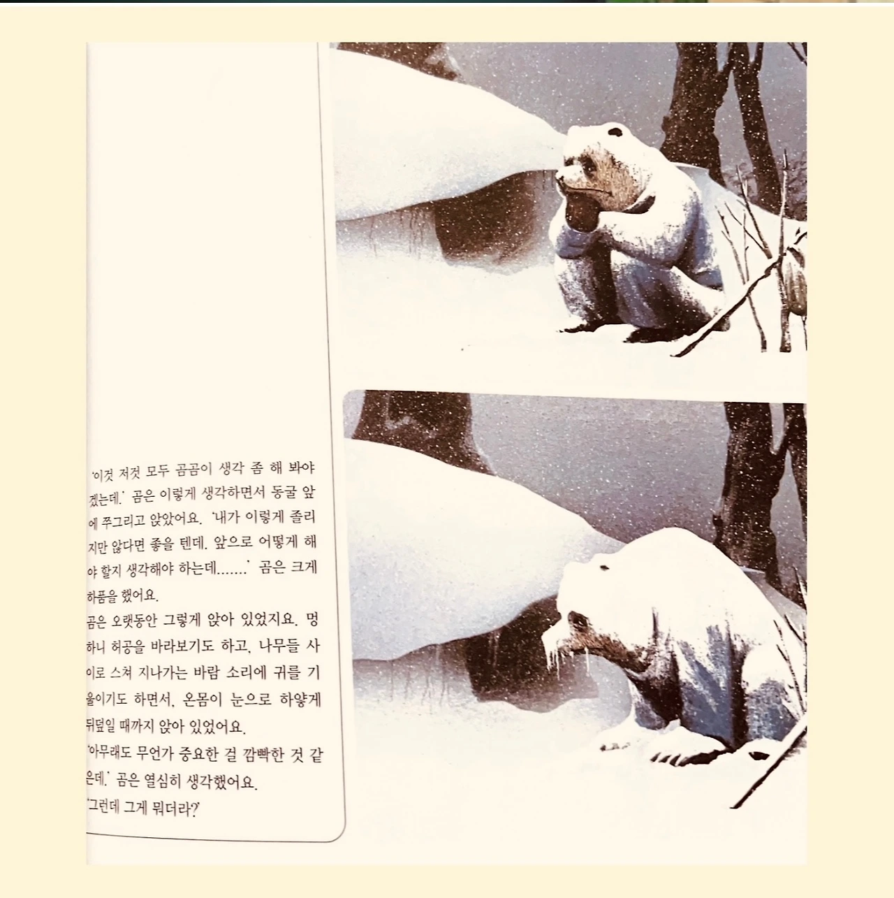 역설적이게도 그를 곰으로 증명하게 한 것은 논리적 반박이 아니다. 그것은 다름 아닌 쏟아지는 졸음이었다.