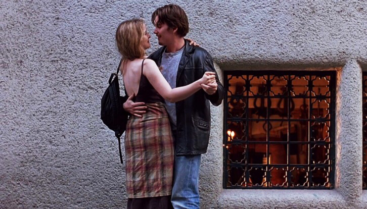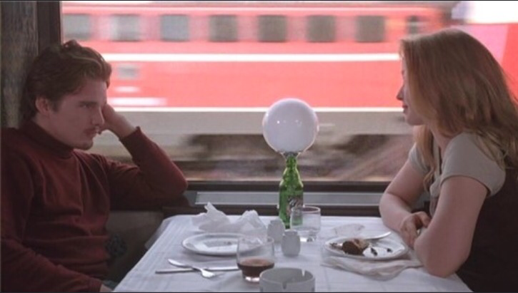 '비포 선라이즈'의 줄거리는 기차에서 우연히 만난 두 주인공이 첫눈에 반해 사랑에 빠지고 하루동안의 로맨스를 즐기다가 6개월 후 다시 만나자는 약속만 남기고 헤어진다는 간단한 내용.(줄거리는 간단하지만, 두사람의 주고받는 대화가 흡입력이 있다)