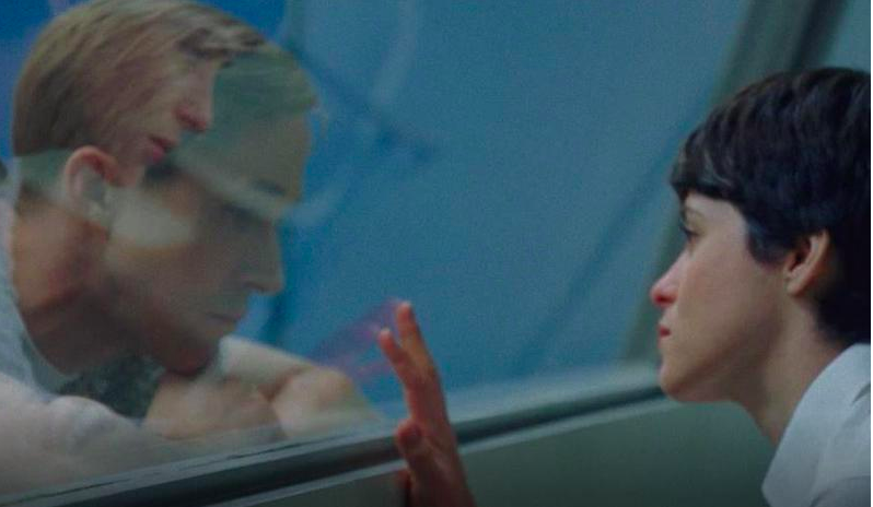 <퍼스트맨>속 암스트롱은 삶의 무게가 너무 과중하여 일이 차라리 피난처 역할을 하는 듯 보였다. 달에 간다면 어떤 심경일 것 같냐고 묻는 기자의 질문에 담백한 대답을 하고, 돌아와서도 드라마틱하고 영웅적인 엔딩으로 끝나는게 아니라 유리창 너머의 아내와 손키스로 인사를 나누는 모습 등을 보면 ‘누구보다도 내가 꼭 달에 갈거야! 내가 죽기 전에 달에 꼭 가고 말거야.’라는 굉장한 목표지향적 자세로 갔다기보다, 담담하게 자신 앞에 주어진 바위를 밀어올려내는 매일의 끝에 얻은 부수물 중 하나인 것이다.
