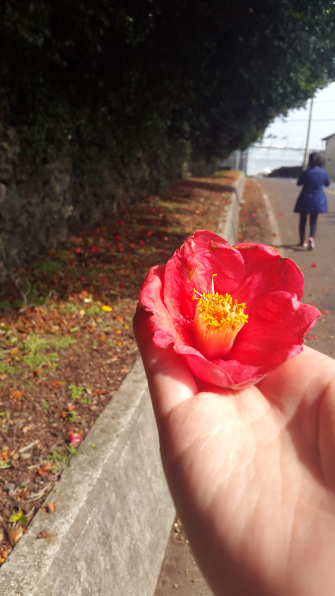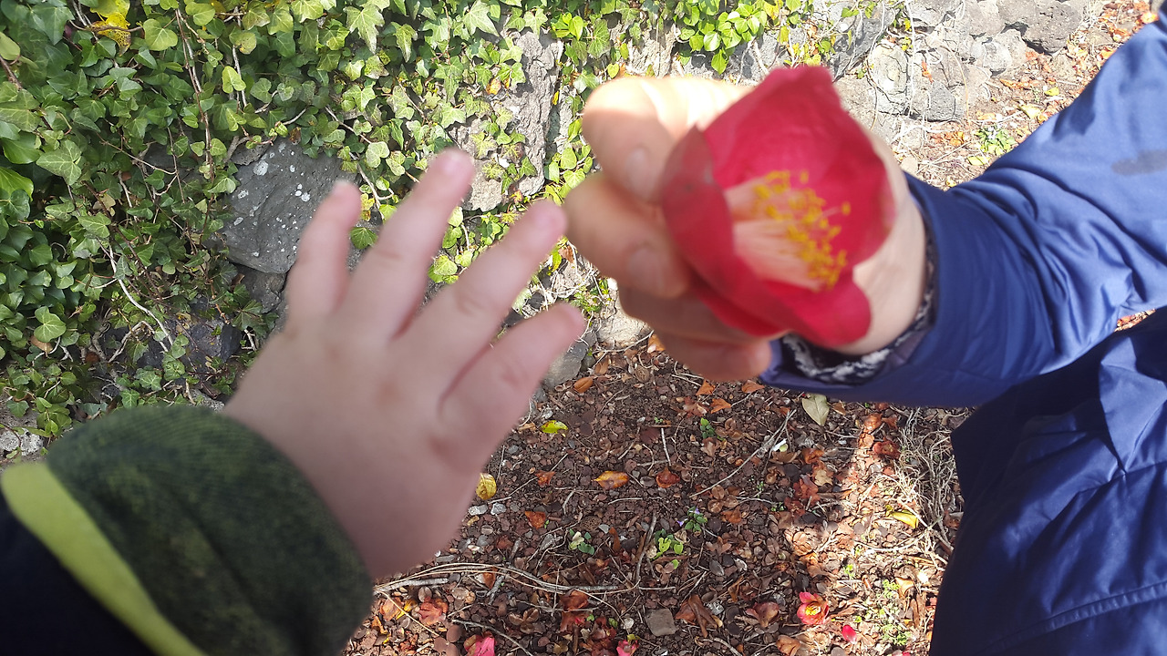 아쉬운 맘을 달래며 길 가에 떨어진 동백꽃을 주워들고 걸으며 한 할머니를 생각했다.