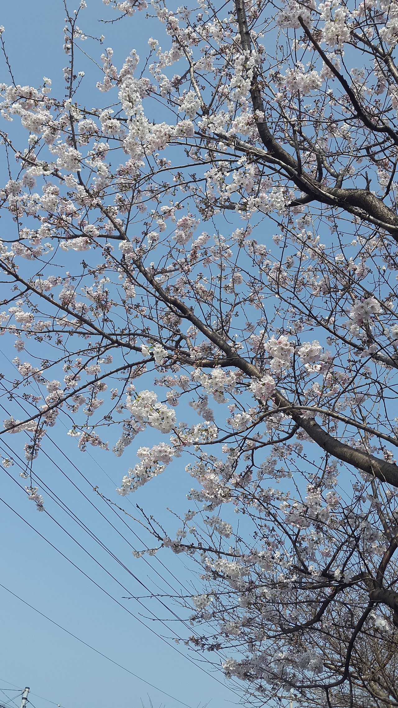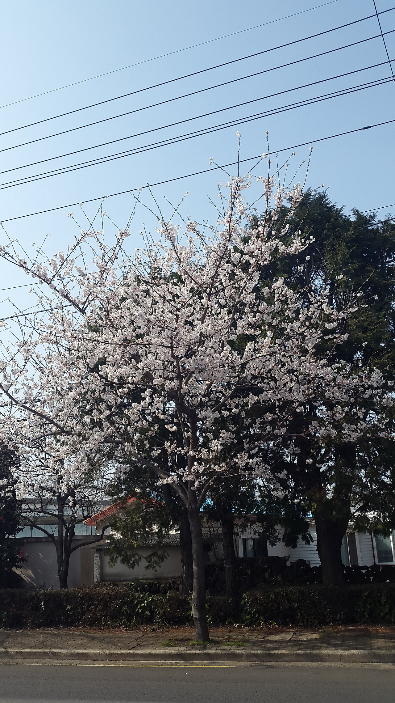 그렇게 아쉬움을 뒤로하고 바닥에 떨어진 동백꽃의 마지막 자존심을 짓밟지 않으려 조심스레 걸어 나오다 한 그루 벚꽃나무를 발견했다. 길 가에 즐비하게 줄 선 벚꽃나무 중 유일하게 만개한 이 나무는 암묵적으로 정해진 개화 시기 따위는 아랑곳 하지 않고 자신이 원하는 때에, 충분한 햇빛의 양이라 판단했는지 무척 다부지게 꽃들을 벌여 놓고 있었다. 그 나무의 눈치 보지 않는 당당함이 무척 마음에 들어 한참 꽃을 올려다보고 있을 때, 나 대신 아들을 안고 있었던 동생이 고함을 질렀다. "앗!"