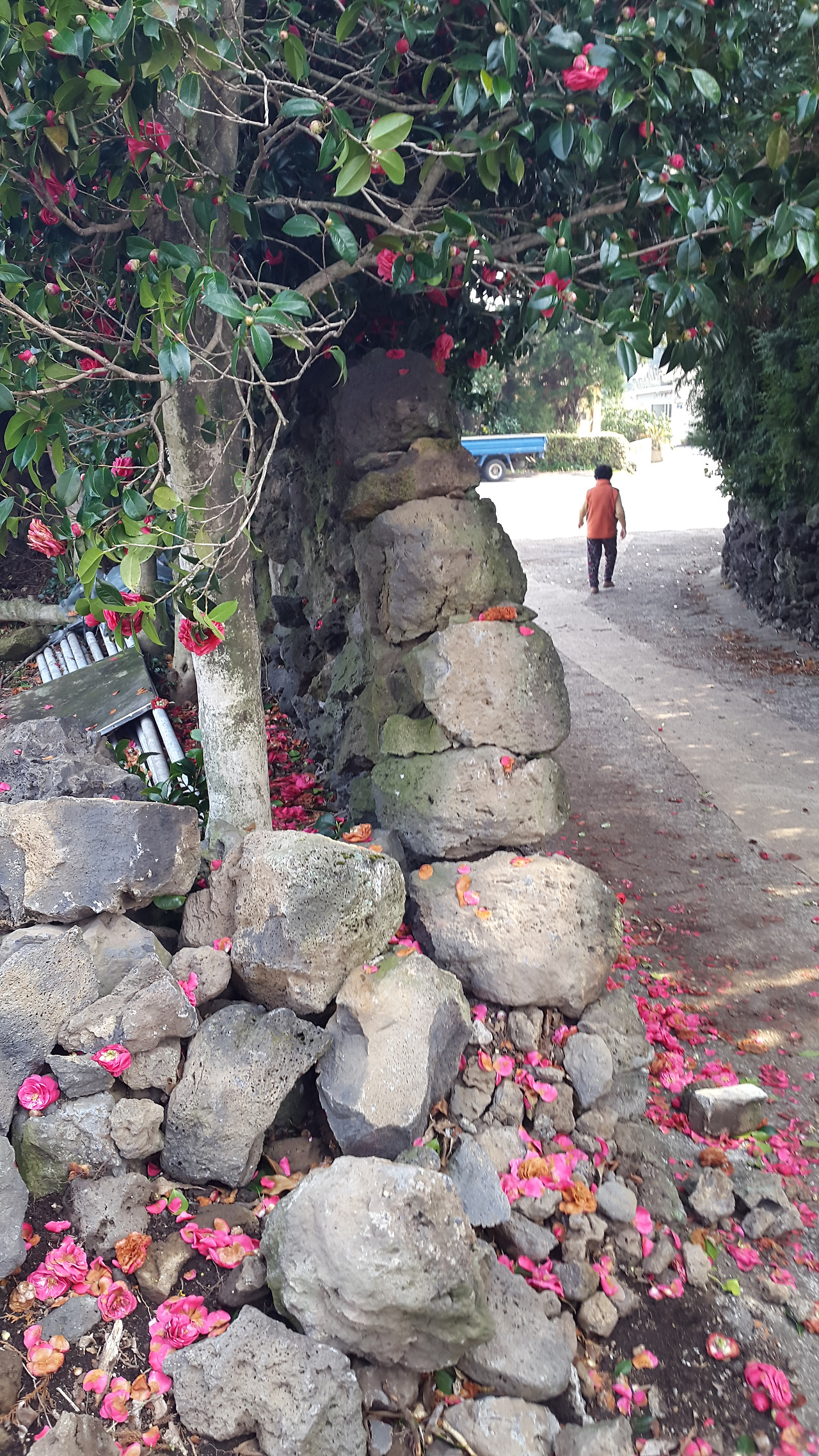 할머니는 제주도 방언으로 여기 꽃이 얼마나 예뻤는지 한참 이야기하셨다. 빨간 동백꽃도, 노란 귤도 소담소담, 듬뿍듬뿍 열렸노라고. 그러면서 자신의 집 안마당에 들어가보라고 하시더니 시크하게 갈 길을 가셨다.