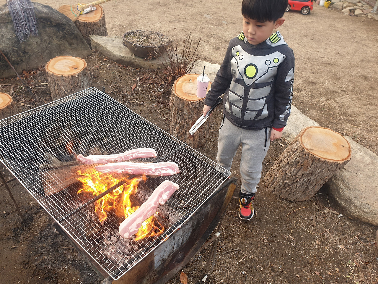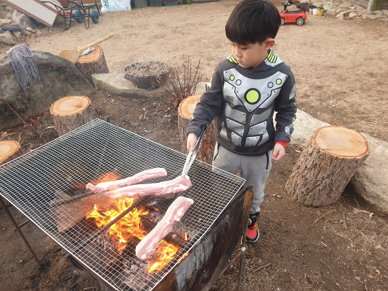 불길이 거세지고 철판에 고기를 올렸다. 나는 막걸리를 따라 딱 한 잔 했고, 아이들은 고기를 구워 먹기 바빴다. 아이들의 조그만 볼은 빵빵하게 부풀어올랐다 금방 꺼졌다.