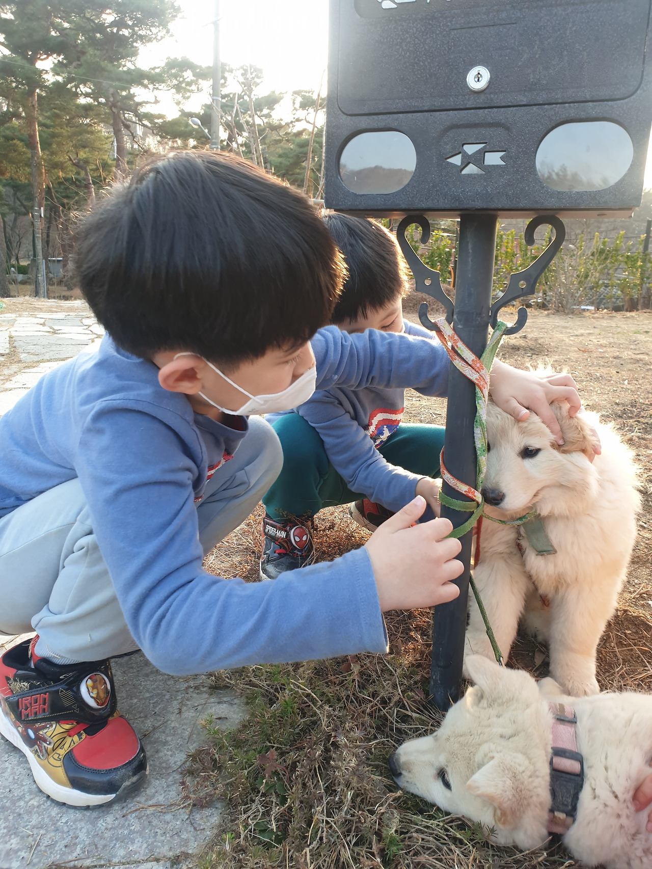 우리는 내일 할 일이 많단 말이야. 유치원 끝나면 오는 길에 구름이 (교회 앞마당 큰 개)도 놀아줘야 하고, 곶감이(옆집 꼬마 개) 밥도 줘야 하고, 곧 다른 곳에 갈 하양이 두 마리(동네 아기 개지만 덩치는 산만한 개)랑도 놀아야 한다고."