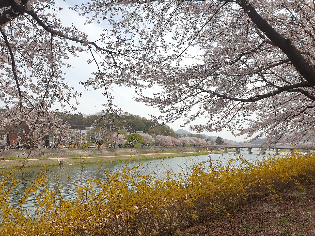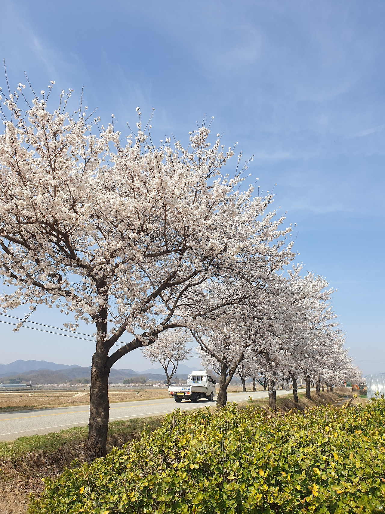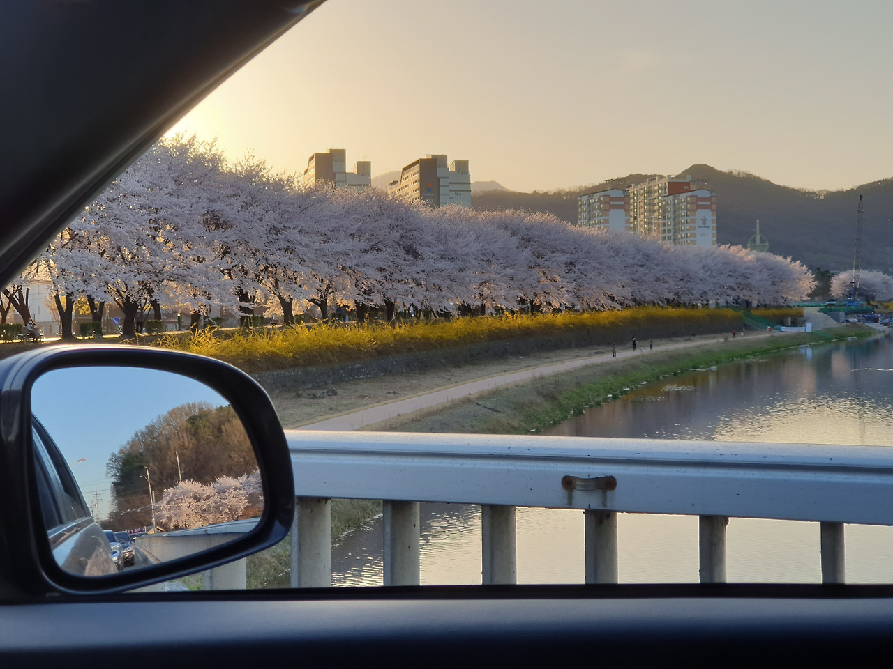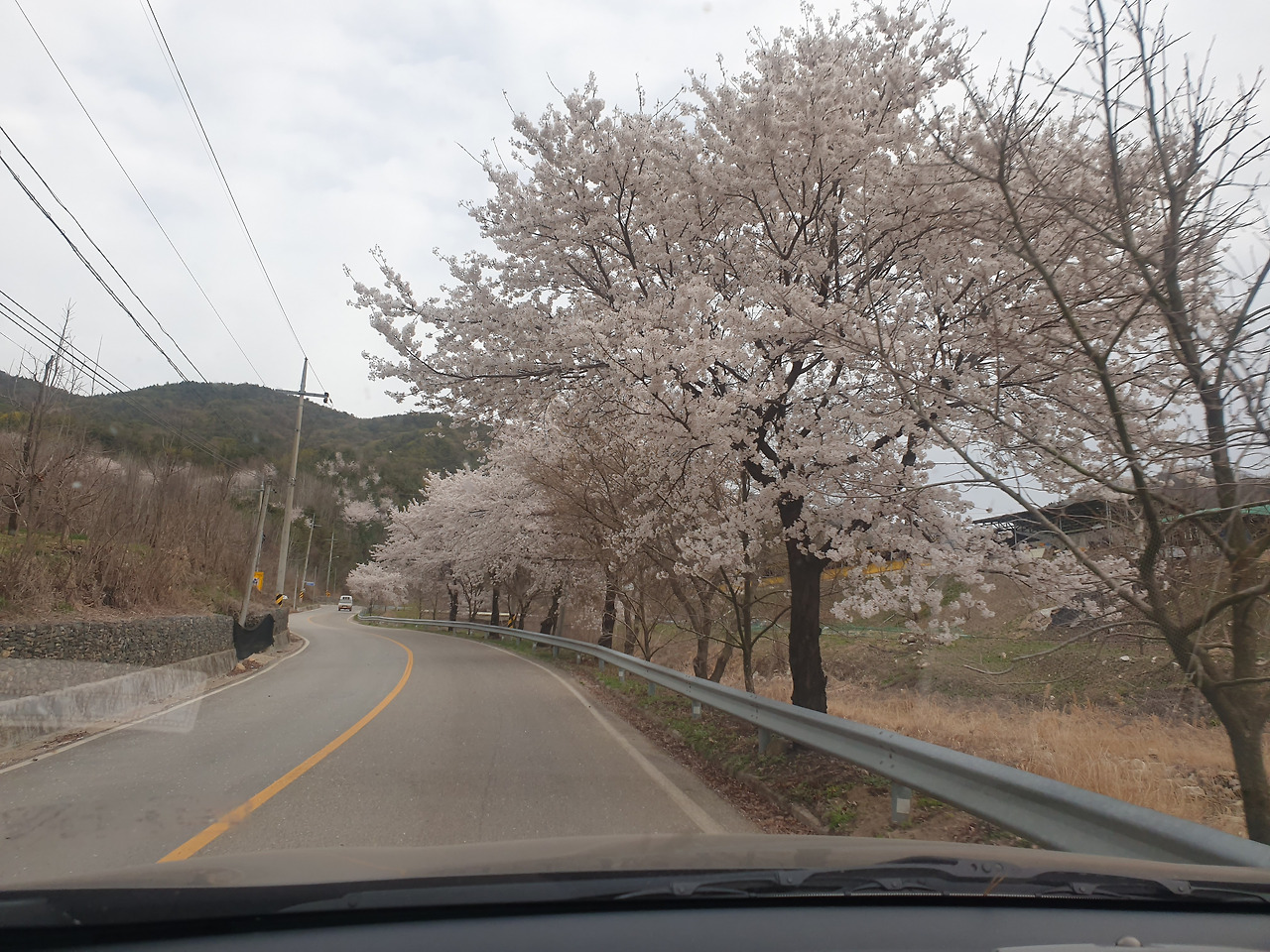 경북대학교 상주캠퍼스 샛길, 외서의 도로변, 갑장산 아래의 꽃그늘, 집 앞의 산 벚꽃.