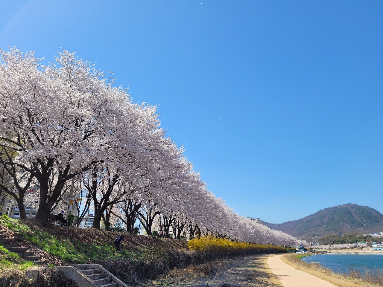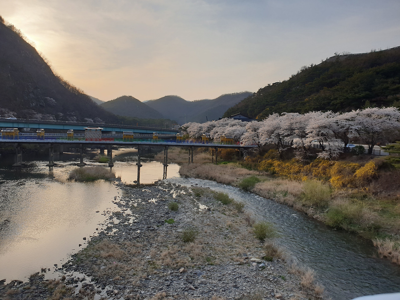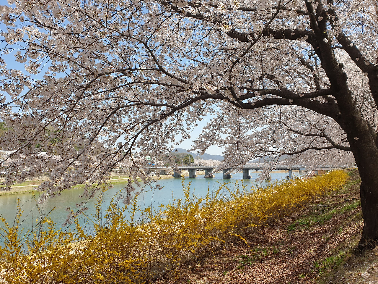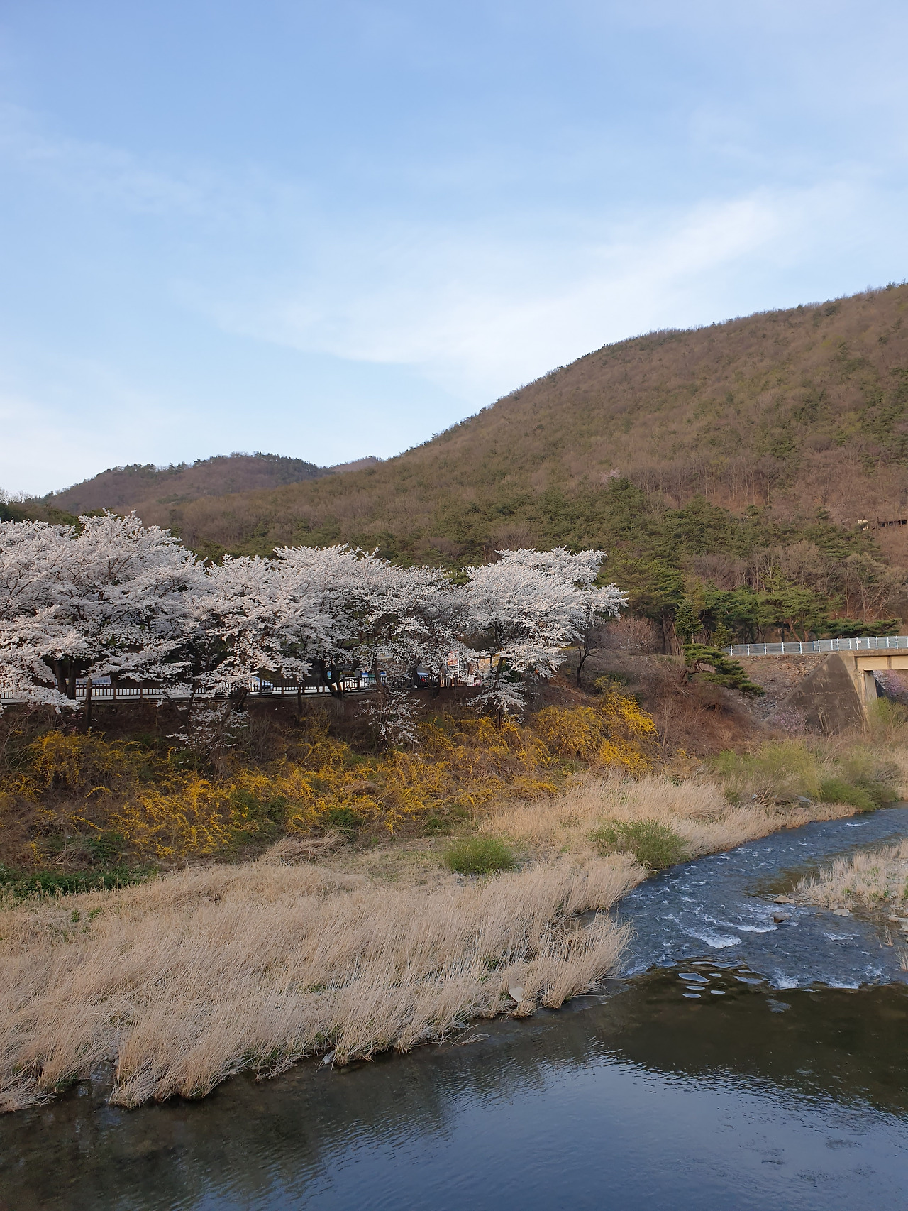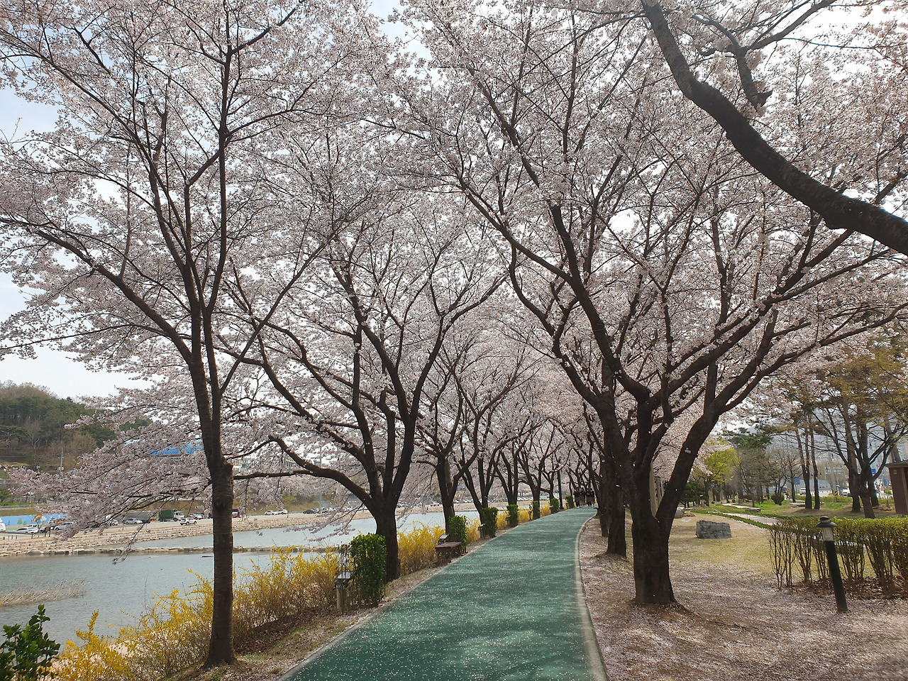 경북대학교 상주캠퍼스 샛길, 외서의 도로변, 갑장산 아래의 꽃그늘, 집 앞의 산 벚꽃.