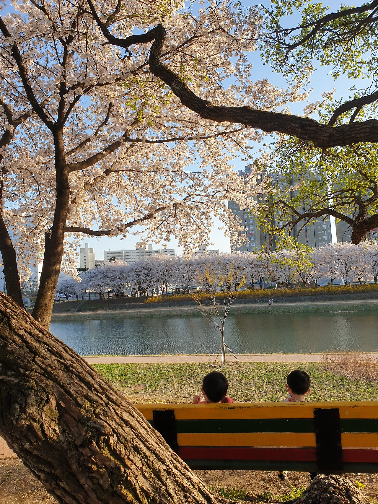 벚꽃 시즌의 학교는 늘 시험 출제 기간이거나 셤 기간이라 여유가 없었다. 바쁜 시기임에도 그 찰나를 놓칠 수 없어 부득불 시간을 내기 일쑤다. 하지만 도시에 살면서 벚꽃 명소를 찾아다니는 일은 여간 진 빠지는 일이 아니었다. 막히는 차들과, 넘처나는 인파들 속에서 아이들을 챙기느라 늘 피로감을 느껴 꽃 터널을 지날 때면 '꽃이고 뭐고 다신 꽃구경 나오나 봐라'란 맘이 불쑥 생기곤 한다. 그럼에도 불구하고 벚꽃이 피기 시작할 3월 말 즈음이 되면 마음이 들썩이기 시작했다.