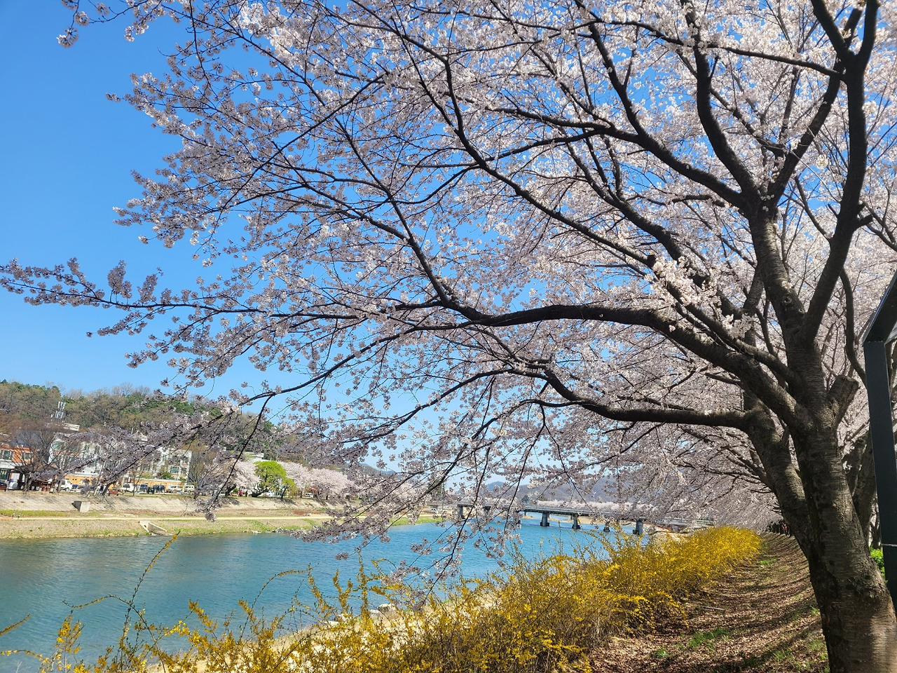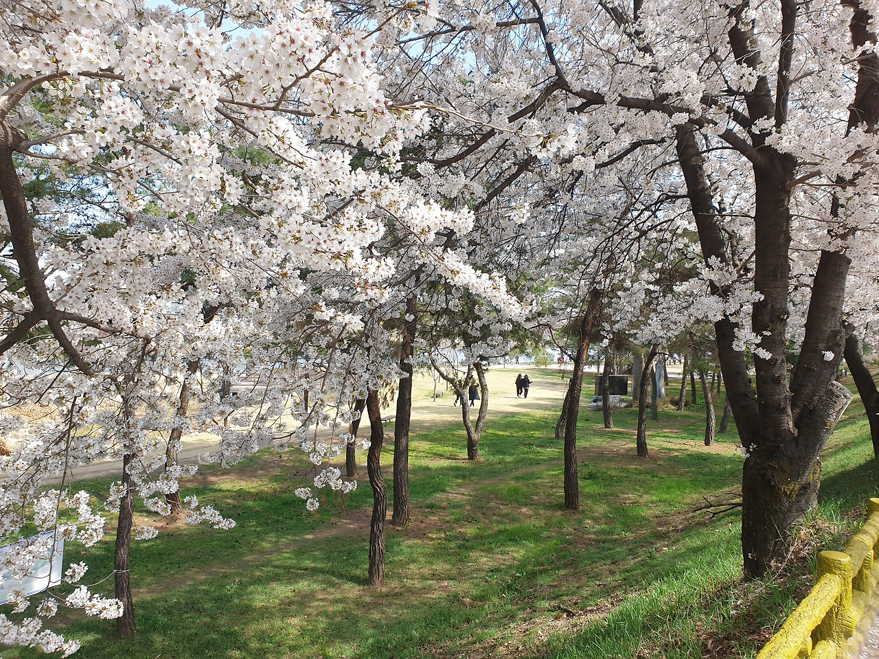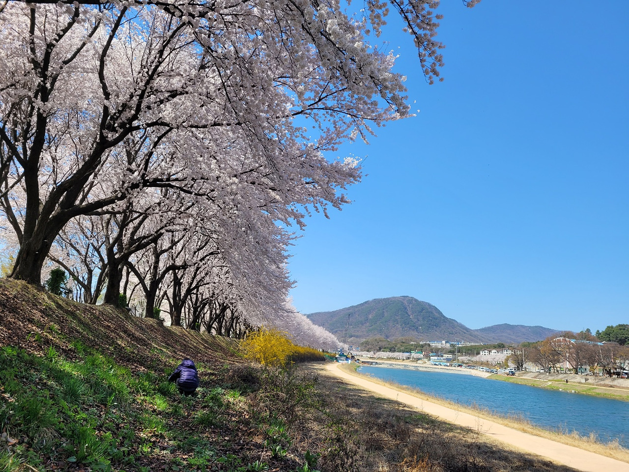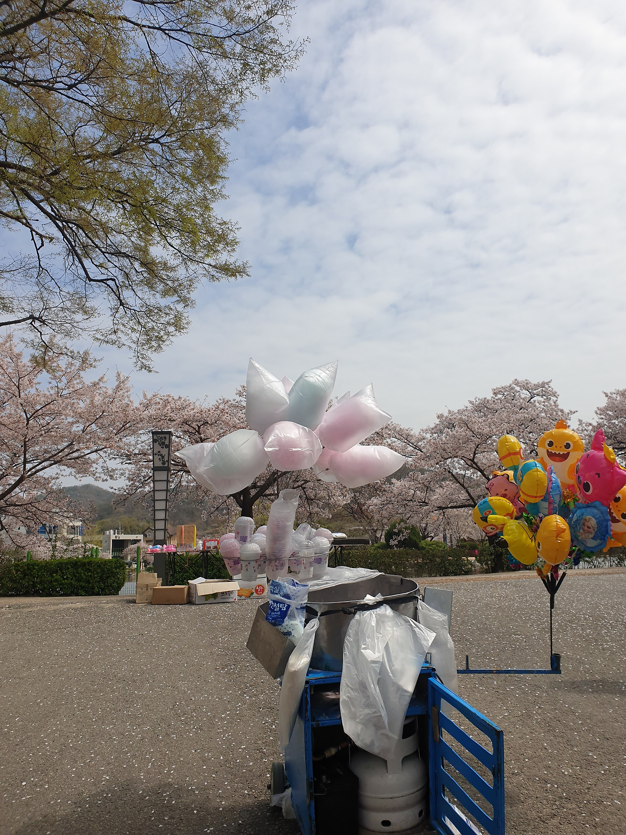 김천역에서 만난 친구와 sns에서 본 벚꽃 명소, 연화지를 찾아 거닐었다. 연화지는 상춘객들로 붐비는 유원지의 요소를 그대로 품고 있었다. 파아란 하늘과 연못을 빙 둘러 심은 벚꽃나무, 꽃놀이 나온 중년층과 학생들.