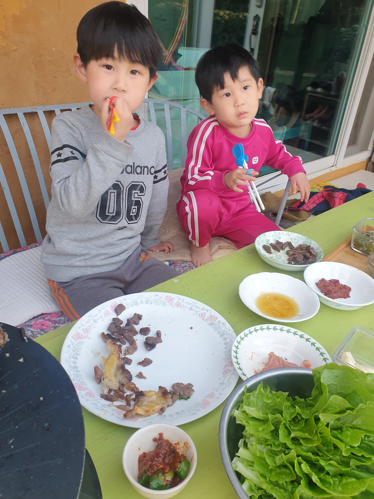 아이들은 유난히 마당에서의 저녁 식사를 즐거워했다.