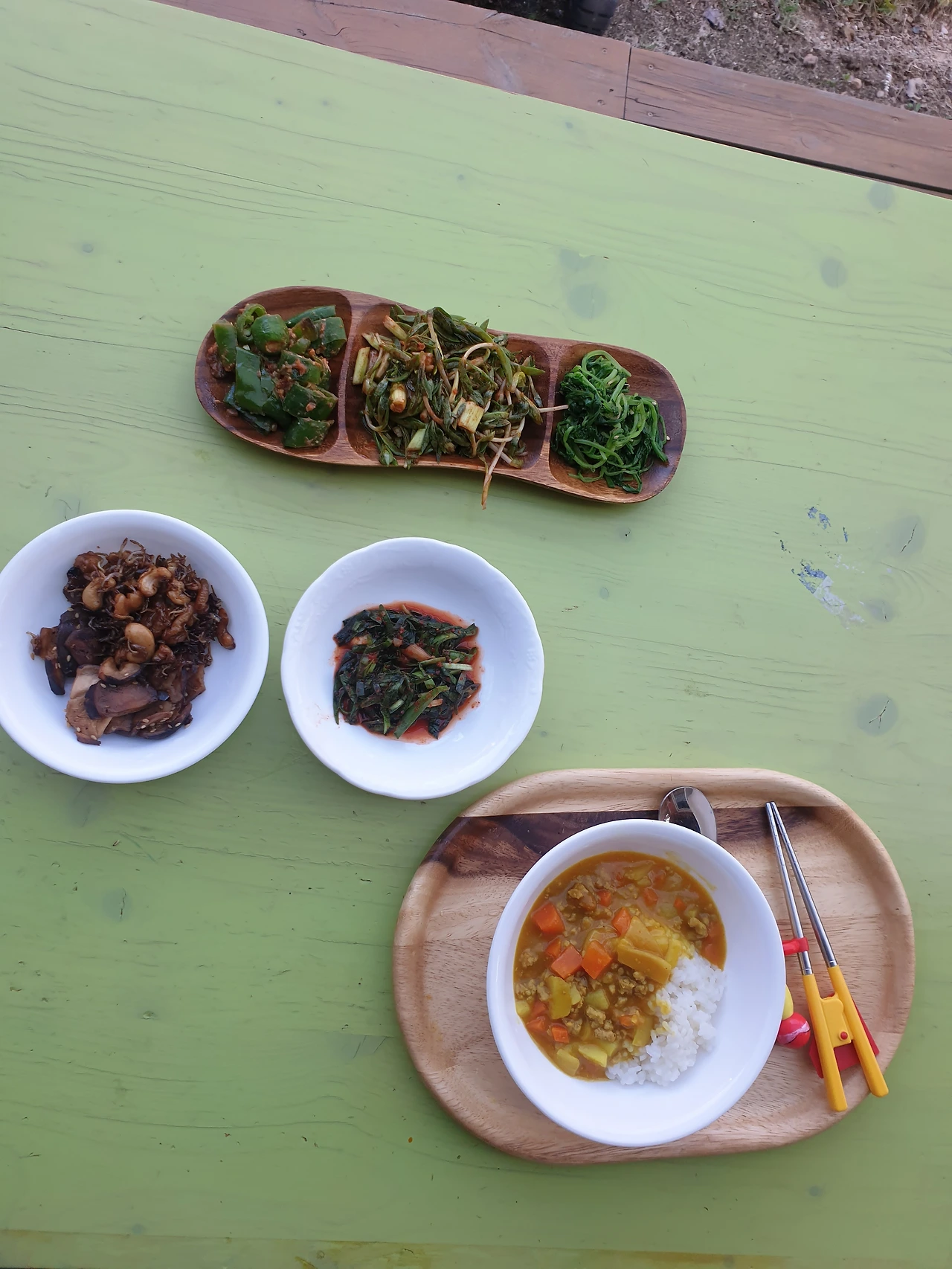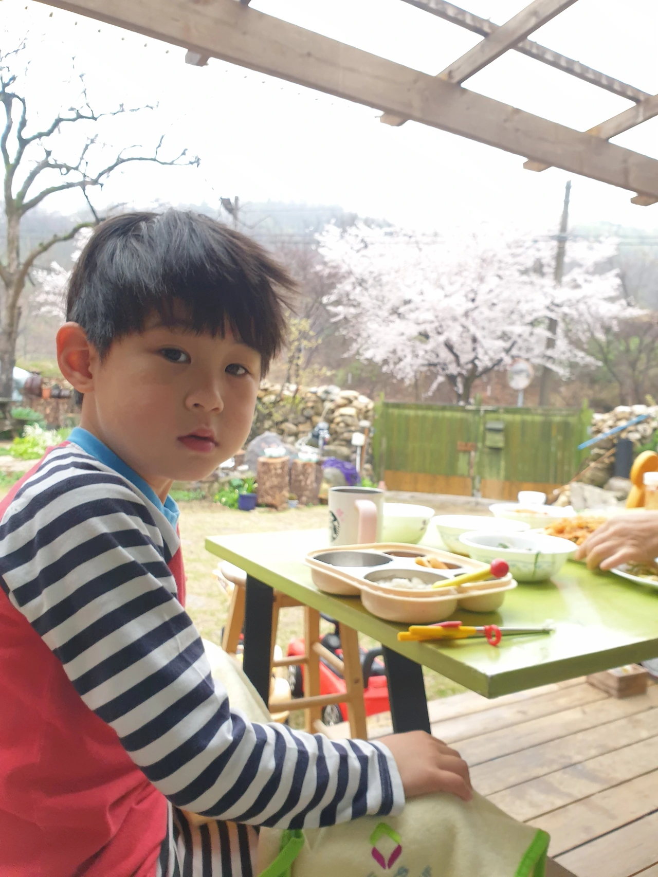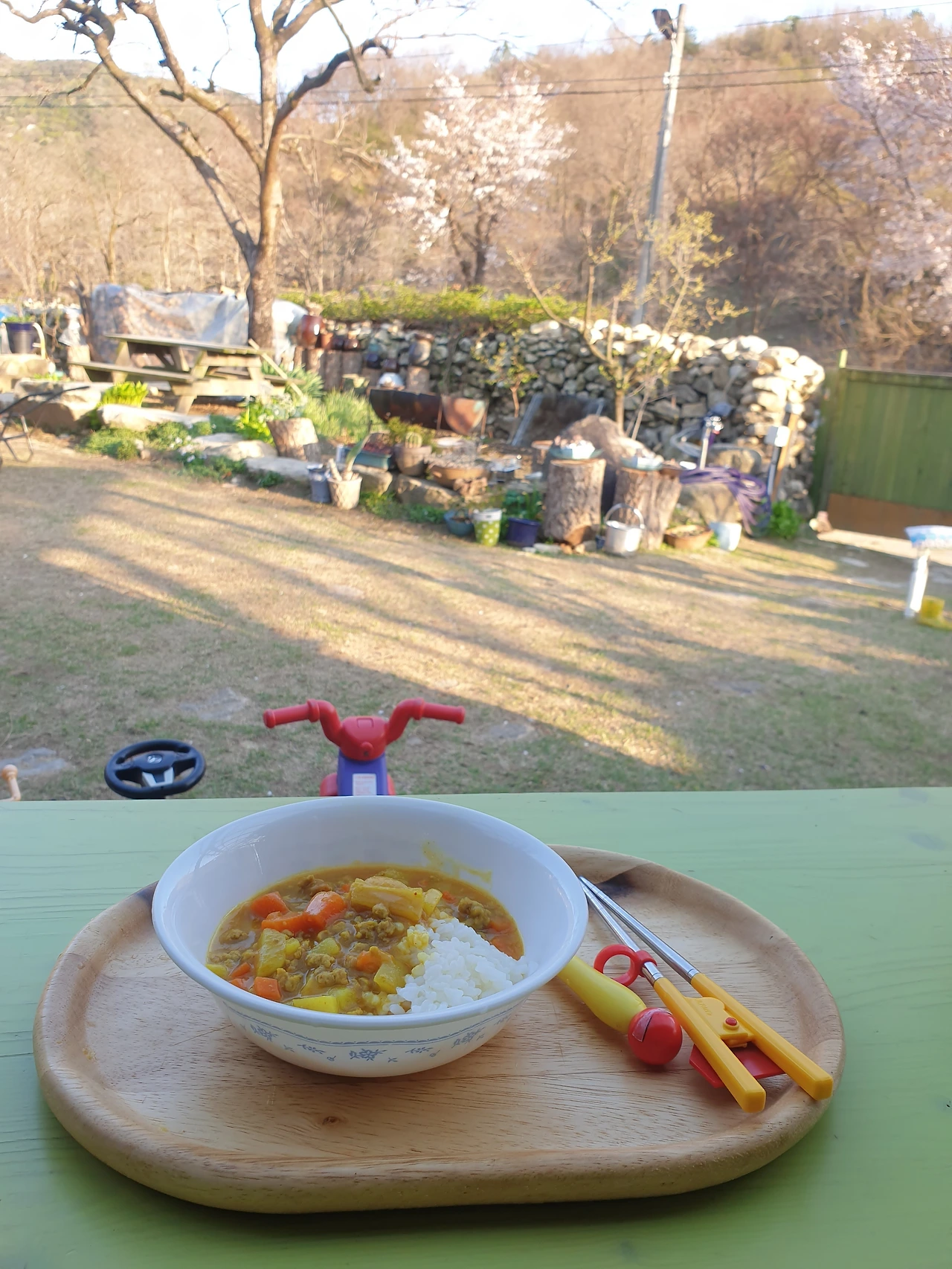 어떤 날은 준비가 귀찮아서 간소하게 카레라이스 한 그릇을 만든다. 대충 먹고 얼른 책 읽자고 구슬릴 셈이었다. 아이는 밖에서 굳이 먹어야겠다고 카레라이스 한 그릇을 쟁반에 올려 들고 마당의 식탁에 앉는다. 오늘은 좀 춥지 않으냐고 묻자 아이는 전혀 춥지 않다며 밖에서 저녁을 먹어야지 기분이 좋다고 답했다. 아이는 찬바람에 금방 식은 카레라이스를 야무지게 먹으며 비 온 후 산빛이 달라진 것을 또 야무지게 찾아낸다. 산에 연하게 분홍색이 된 것은 벚꽃이 틀림없다는 제법 옳은 추측도 해낸다.
