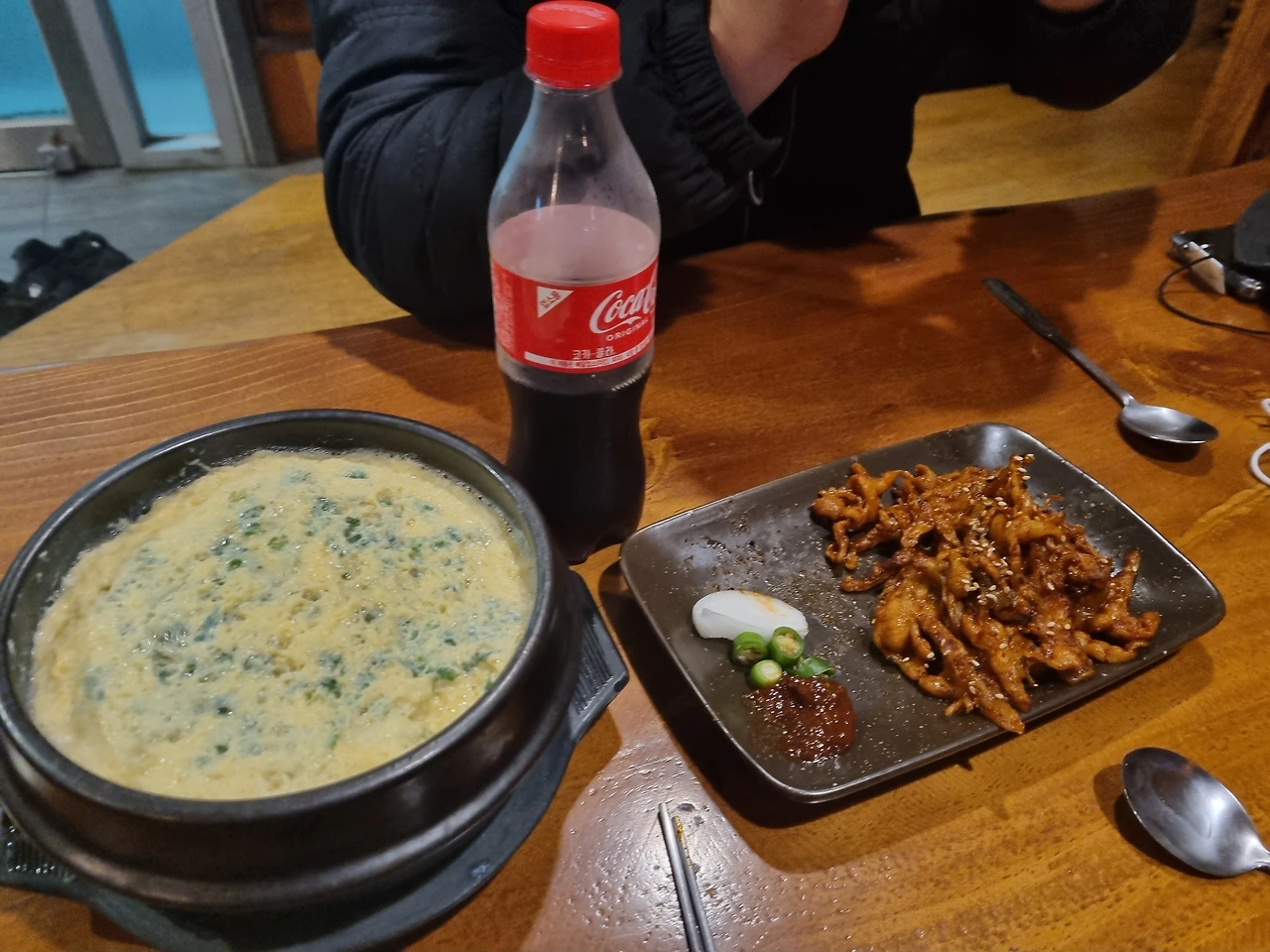 친구 앞에서 여전히 '착하고 성실하고 귀여운 오빠'는 남편이 되어 묵묵히 닭발과 계란탕을 오가며 먹고 계셨다.