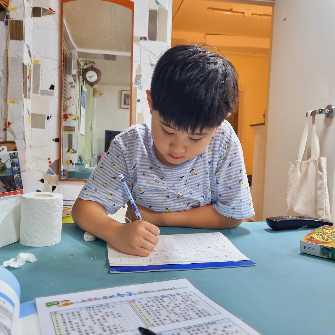 그런데 첫째를 가르칠 때마다 자꾸 그때의 내가 보이고 얘도 나처럼 수학에 발목 잡히면 어쩌나 싶어 아찔해져. 아이가 주눅 든 모습을 보니까 더 속상하고, 더 일찍 노출시킬 걸 싶기도 하고. 나는 수학 교과서에 있는 문제 정도만 풀면 된다고 생각했는데 그 이상을 해내야 하는 건 욕심 내지 않기로 해놓고... 결국 휘둘리고 있어.