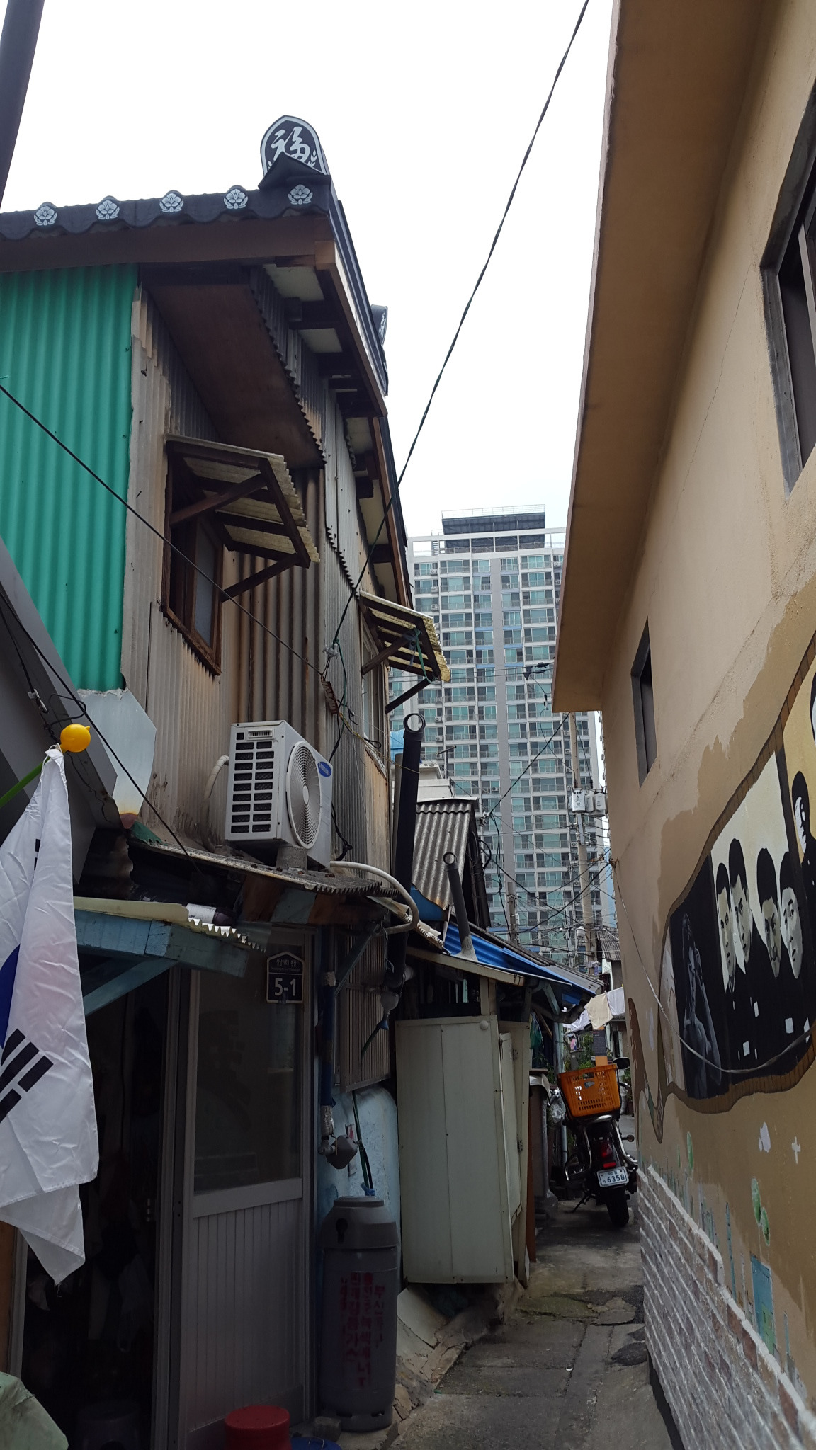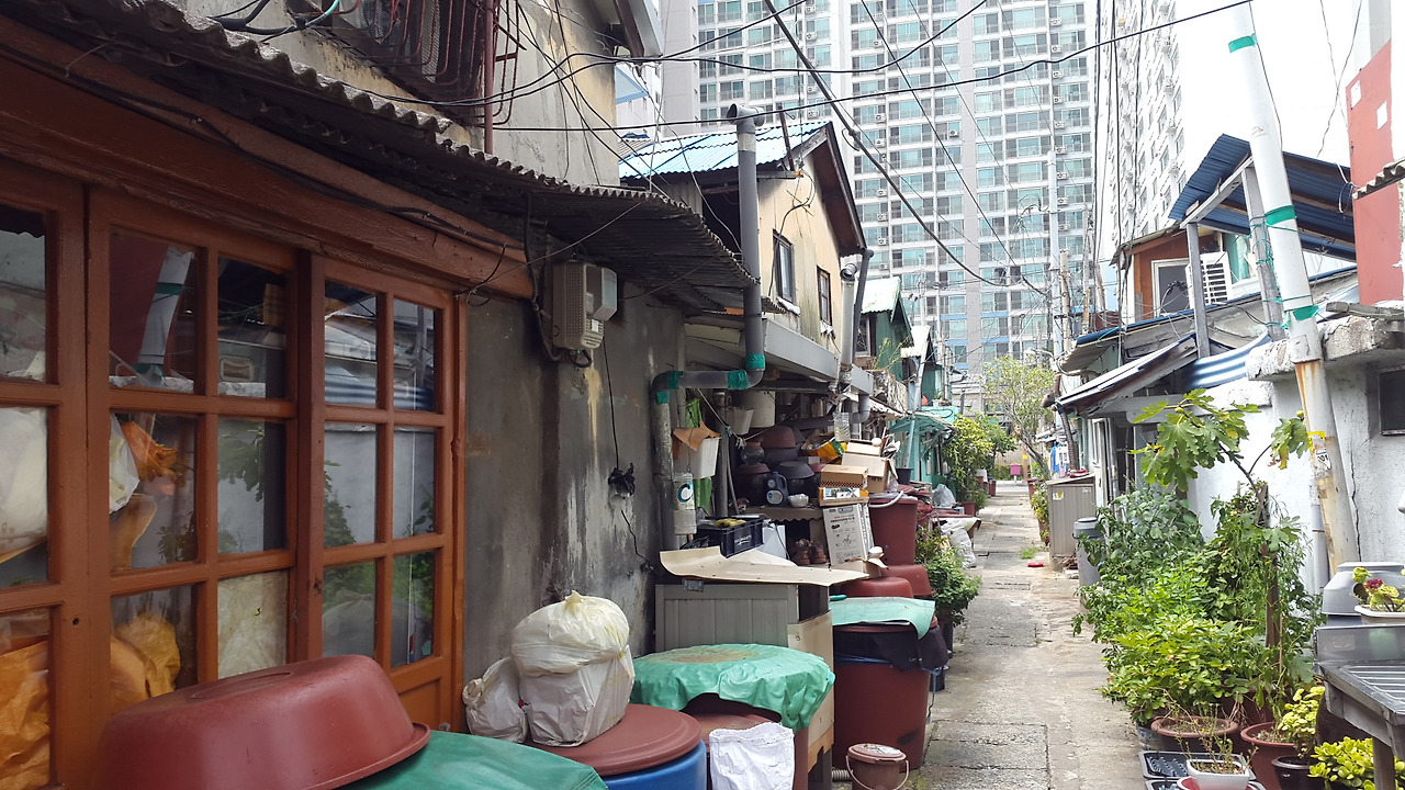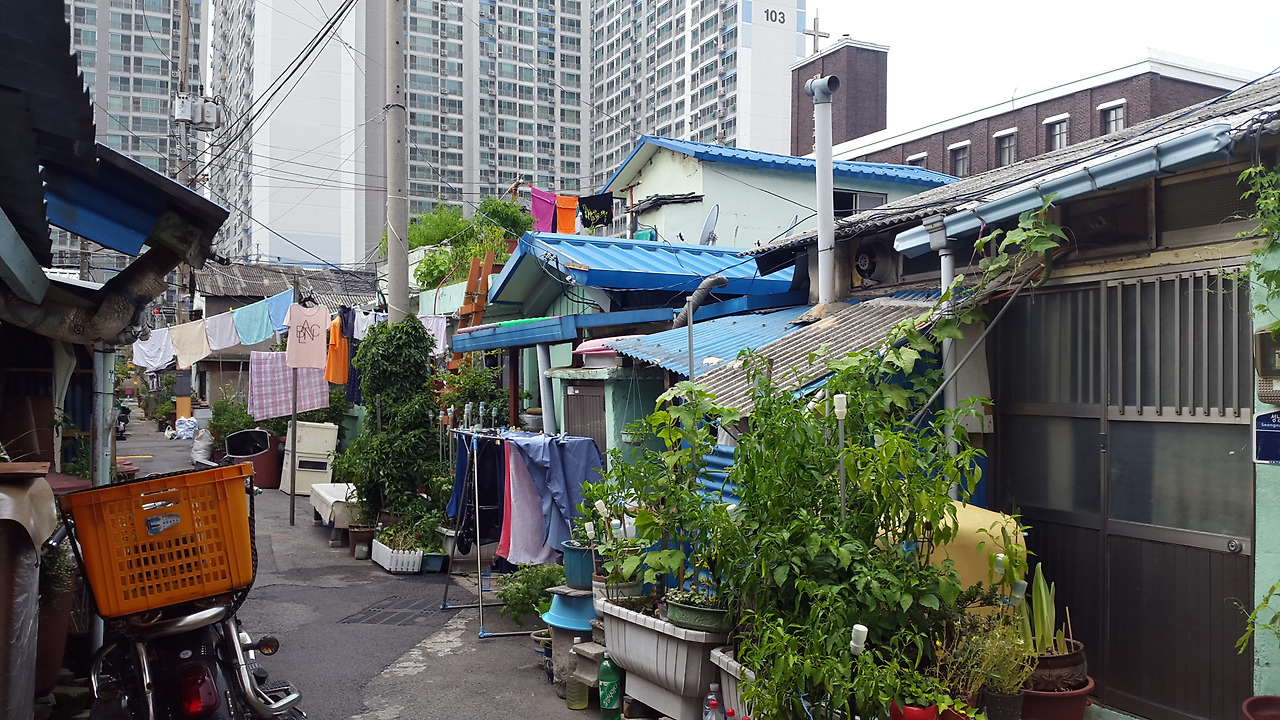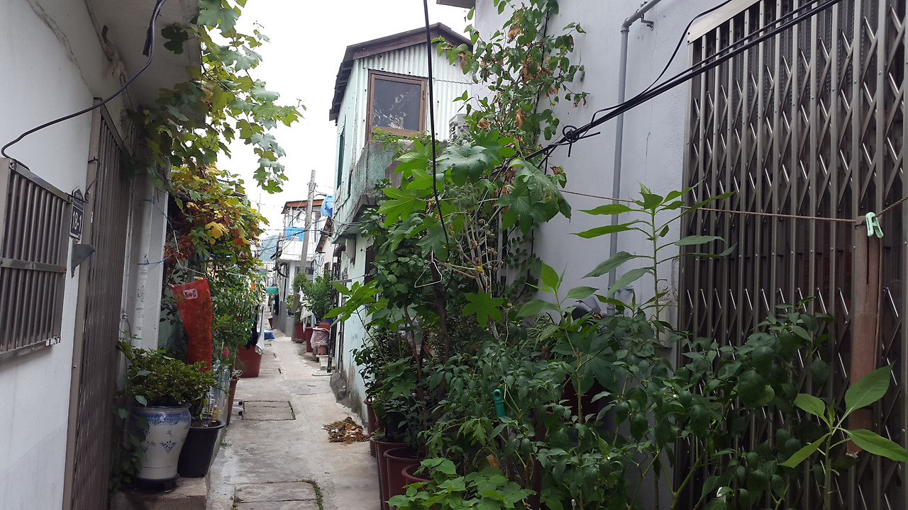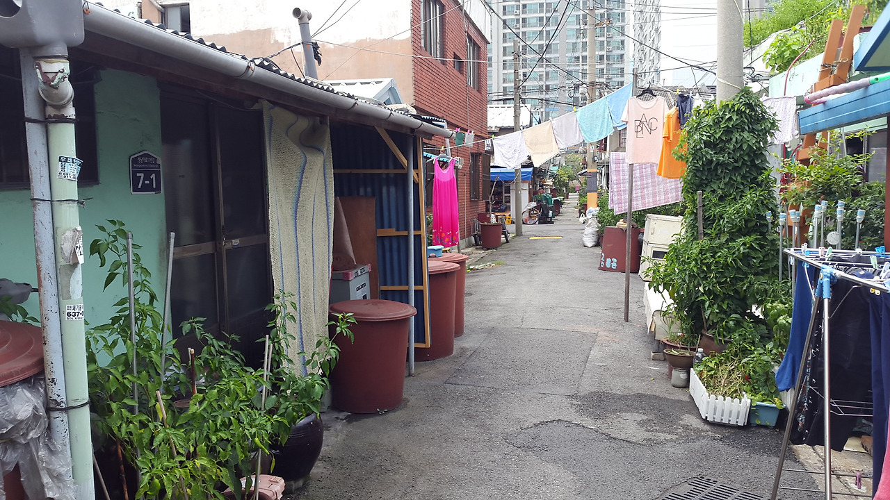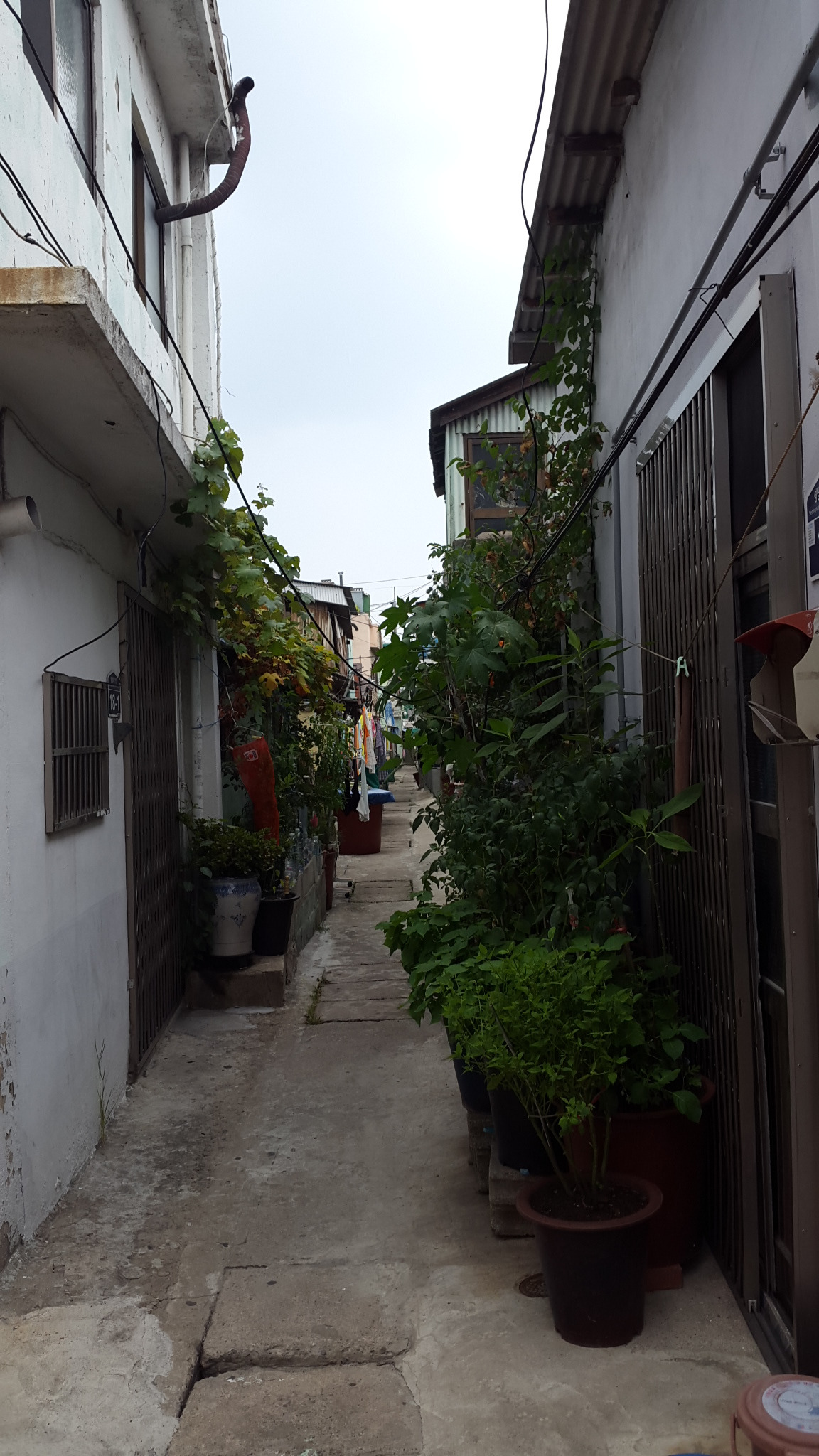 회색 시멘트 골목길을 초록으로 물 들인 고추 화분이 아름답다는 것도 너무 감상적인 곳 같아 부끄러웠다.