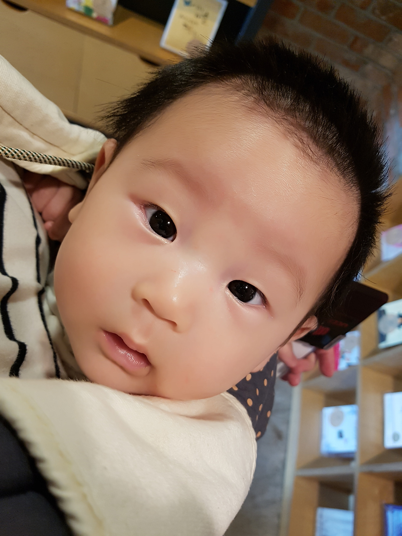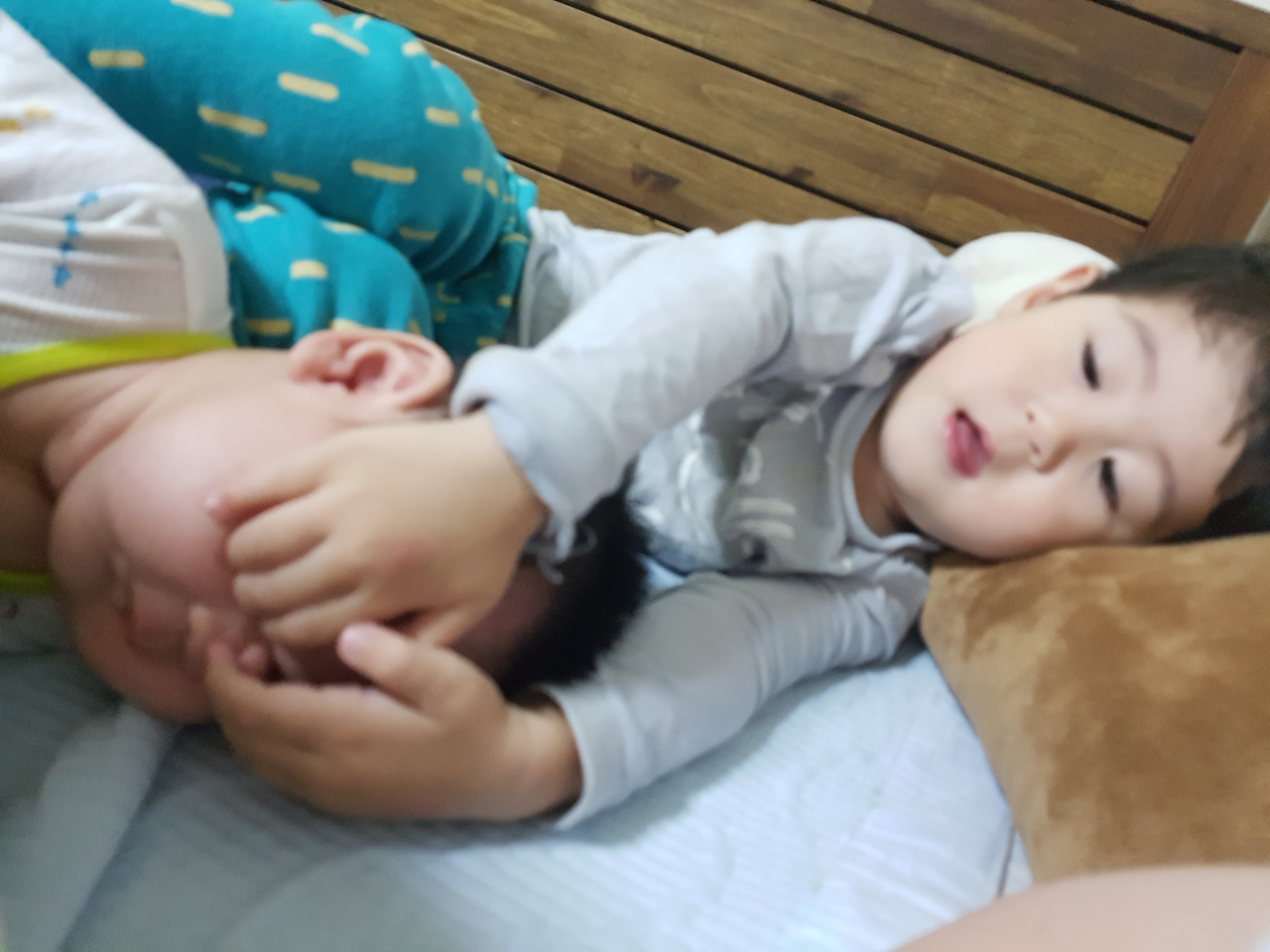 형아가 있으면 울지도 않고 있다가 형이 어린이집 가면 비로소 울며 안아달라는 백일 둘째.