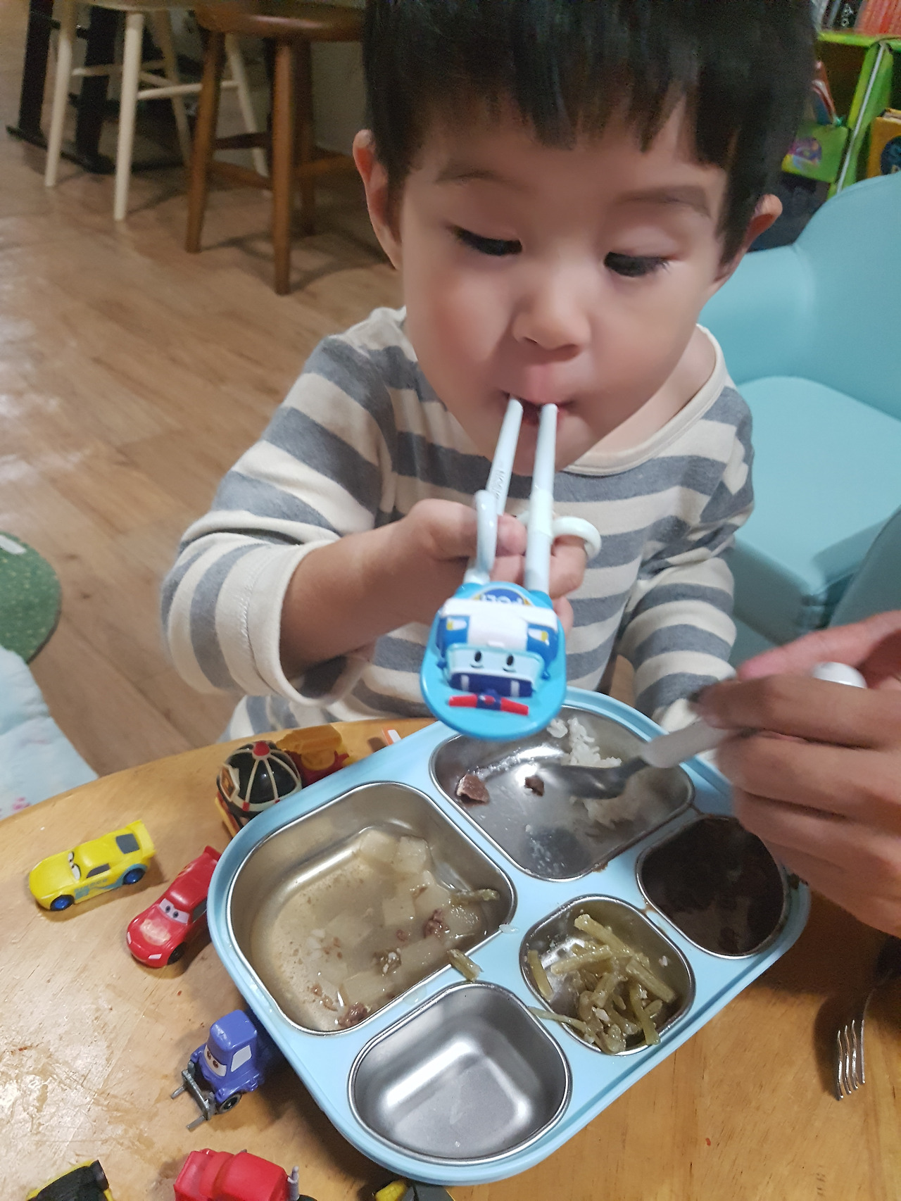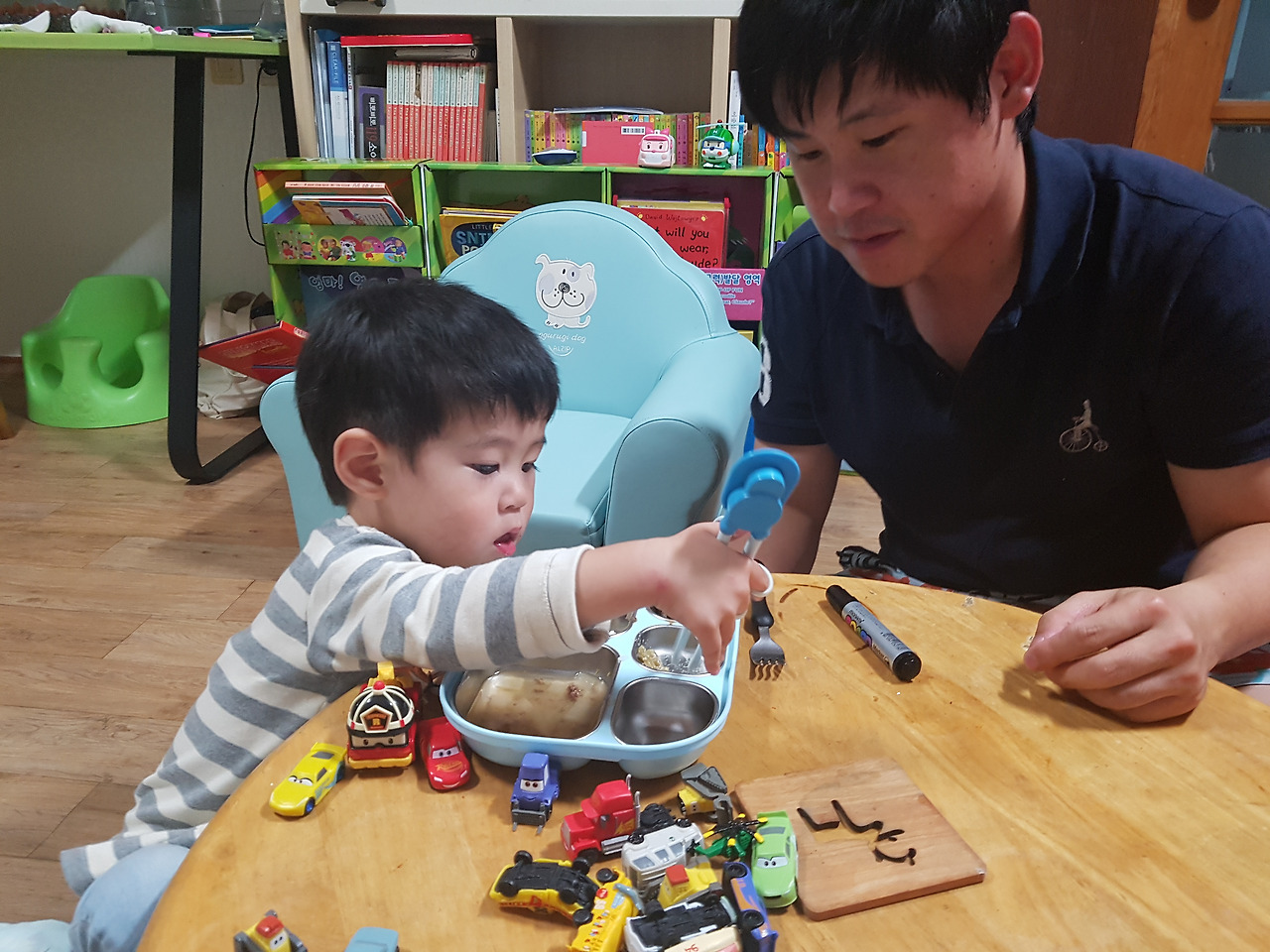 남편이 아들에게 가르쳐 주는 젓가락질.