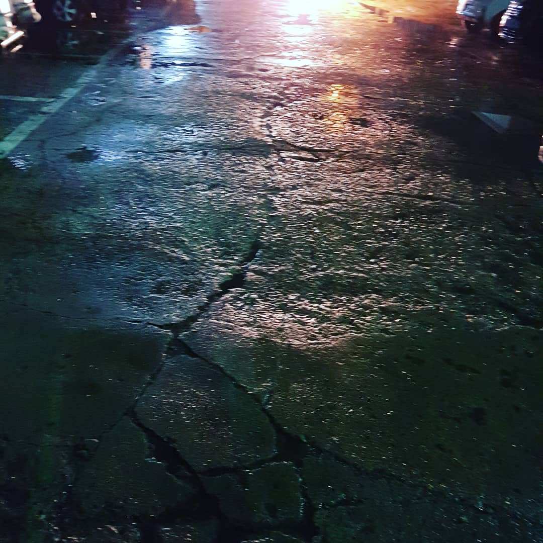 세월을 견뎌낸 거리를 걸으며 균열을 타고 흐르는 빗줄기를 바라보며 중얼거린다.
