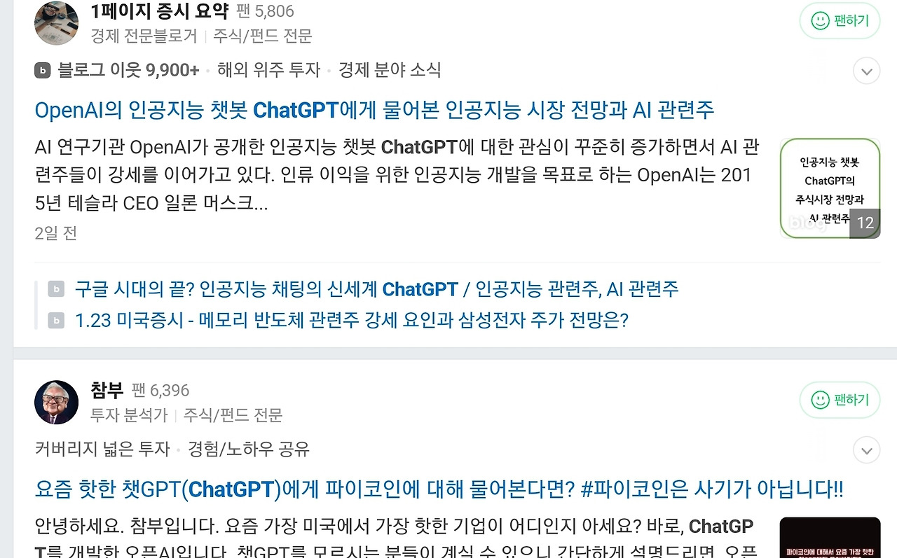 시대의 변화를 예민하게 감지하고 거침없이 탐색하는 인플루언서들은 Chat GPT를 체험하고 리뷰를 공유하고 있다. 이 인공지능의 출시로 관련 기업의 주가변동은 어떻게 될지를 예상하는 콘텐츠도 있고, 챗GPT에게 자신이 보유하고 있거나, 보유를 고려하는 코인이나, 주식종목 등의 시세를 예측해 달라고 요청한 결과를 기록한 글들도 있다.
