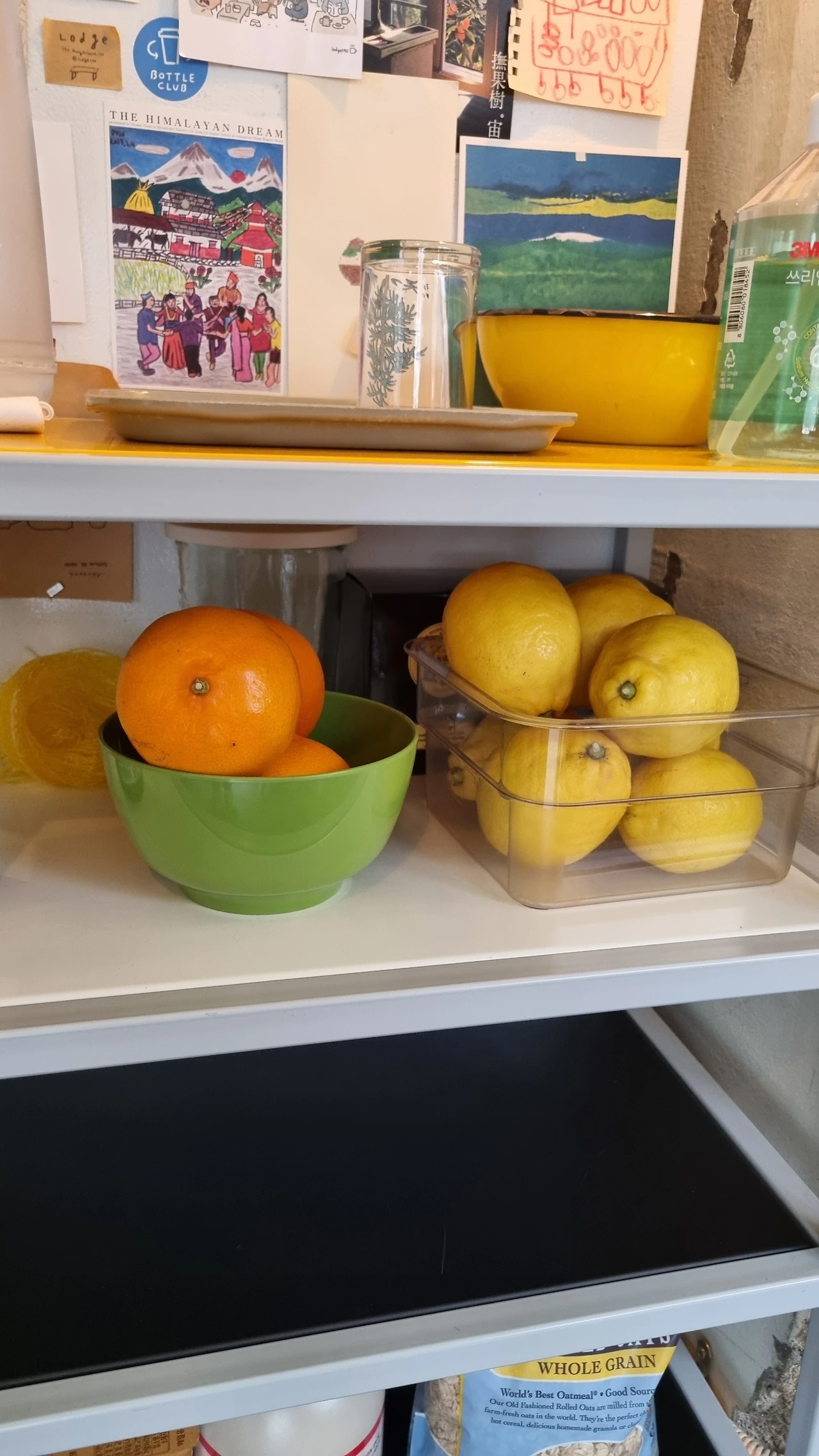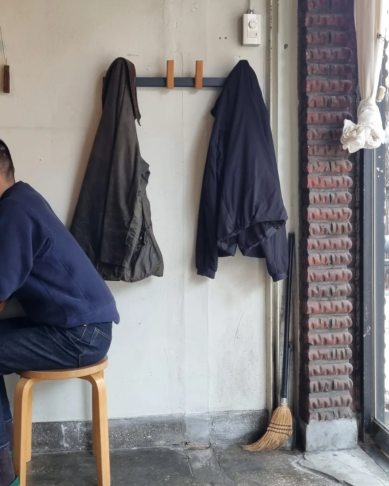 연인 둘이 머리를 맞대고 소곤대는 모습이 따스했다. 나란히 걸린 아우터가 다정했고, 그 옆에 단정히 놓인 싸리비와 쓰레받기는 정겹다.