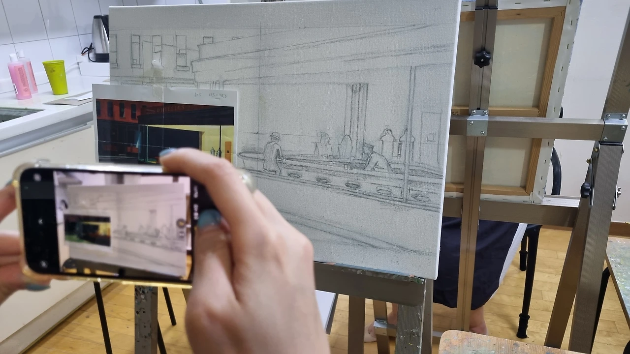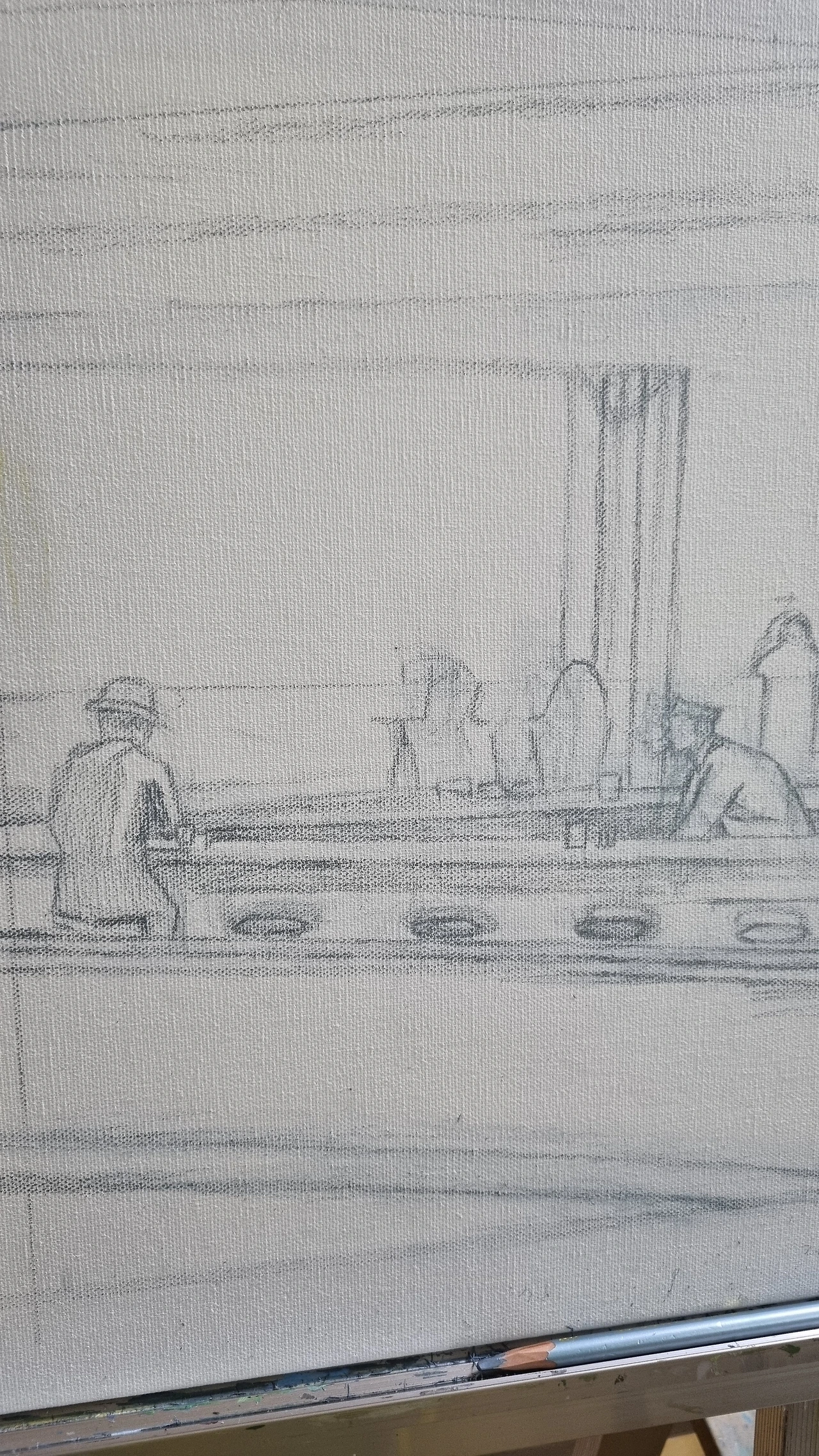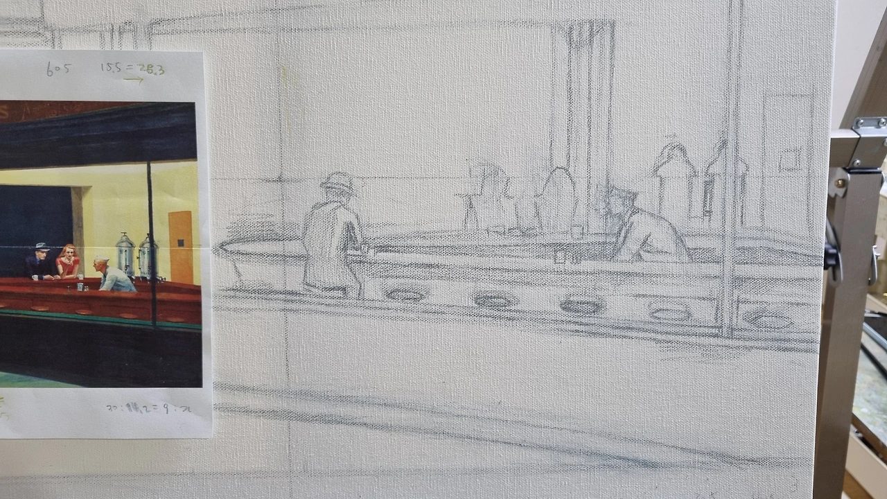 night hawks, 에드워드 호퍼, 지금 그리고 있는 그림, 스케치 과정