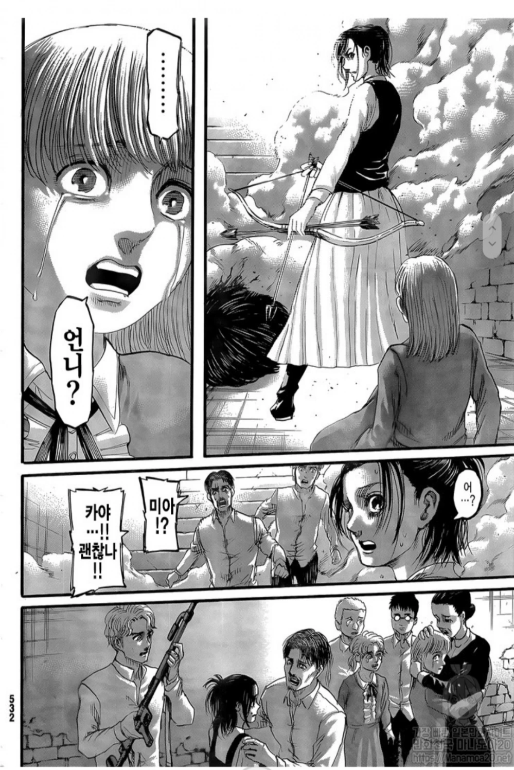 작품을 통틀어 내가 가장 슬펐던 장면은 사샤 브라우스 에피소드이다. 에렌의 분노가 가비의 분노로 계승되는 과정을 보며 느꼈던 안타까움은, 사샤의 구원이 카야에서 가비로 계승되는 비슷한 구조에서 감동을 준다.