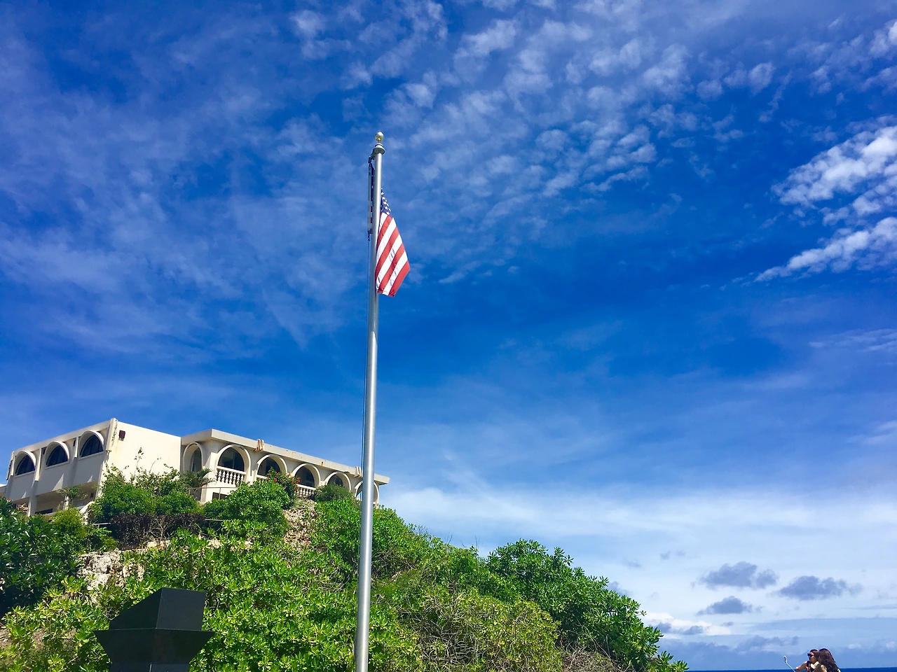 다음으로 방문한 곳은 괌 주지사 관저였다. 사실 건물보다 먼저 눈에 들어온 것은 머나먼 대륙까지 보일 듯 시원하게 뻗은 수평선이었는데 가이드의 말을 듣고 자세히 보니 정말 수평선이 곡선으로 보였다. 세상의 모든 근심을 무를 정도의 둥근 모양, 적도 부근이기 때문에 그렇게 보인다는 설명은 그 불가해한 수평선을 해명하기에 적잖이 궁색해 보였다.