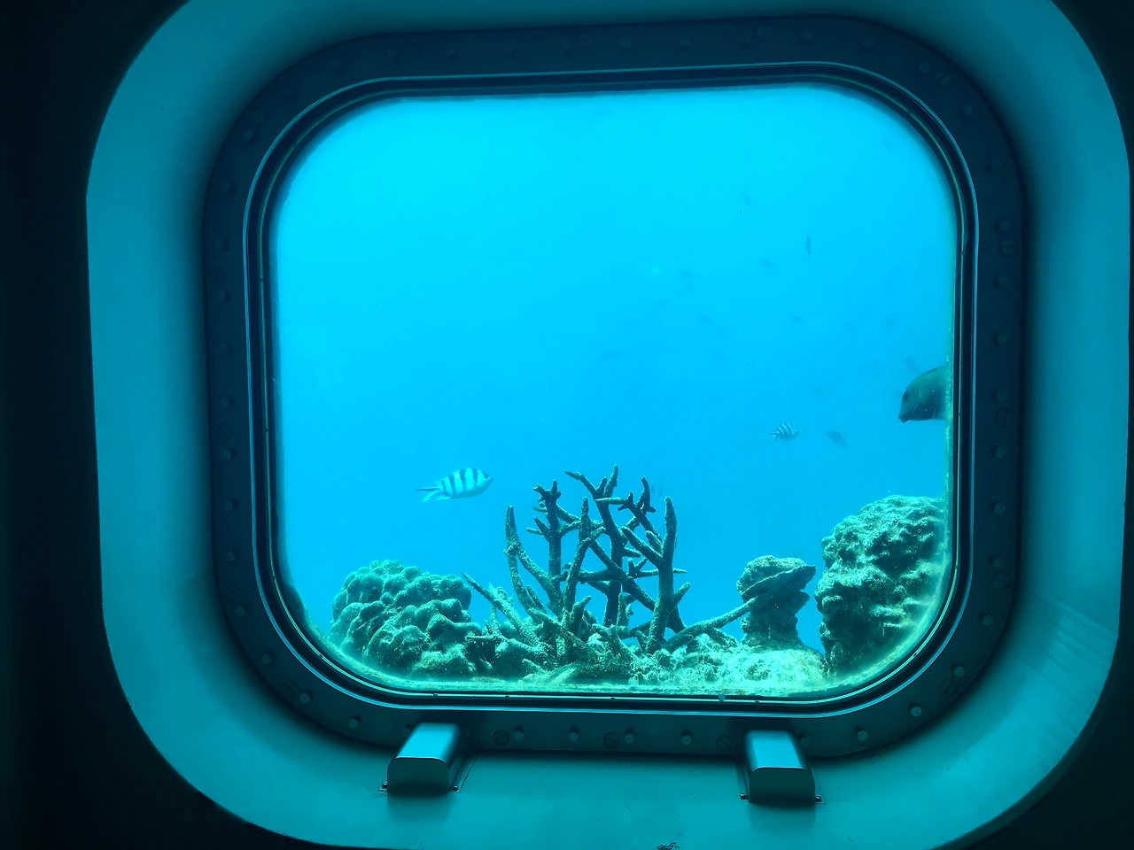 다음으로 방문한 곳은 피시아이였다. 이름 그대로 물고기의 눈이 되어서 수중을 볼 수 있는 곳인데 계단을 따라 쭉 내려가면 잠수함처럼 생긴 건물이 있고 그 안에 마련된 창을 통해 수족관처럼 산호초와 물고기를 볼 수 있었다. 굳이 따로 멋을 내지 않아도 자연 그대로가 가장 아름다운 곳. 천혜의 자연이라는 말은 바로 이런 모습을 두고 나온 말이 아닐까라는 생각이 들었다.