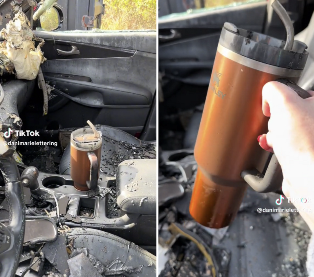 ‘다니엘’이라는 여성은 자신의 자동차가 전소되었는데 스탠리 텀블러는 멀쩡했으며 심지어 텀블러 속 얼음까지 녹지 않고 있었다는 내용의 영상을 자신의 틱톡 계정에 올렸습니다. 텍스트로만 봐도 놀라운 이 영상은 얼마 안 가 틱톡에서 가장 뜨거운 이슈가 되었고 얼마 안 가 스탠리는 '세상에서 가장 튼튼한 텀블러'로 사람들 사이에서 인식되기 시작했습니다.