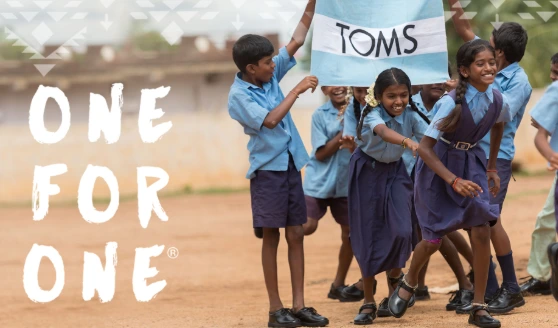 "내일을 위한 신발"(Shoes for Tomorrow)이라는 슬로건을 가지고 있는 탐스슈즈는 이와 같은 일대일 기부 공식(One for one)을 도입하고 있습니다. 탐스 슈즈의 창립자인 블레이크 마이코스키는 아르헨티나의 마을을 여행하던 중 생각보다 많은 아이들이 신발조차 신을 수 없는 빈곤에 시달리고 있다는 사실을 알게 됐는데요. 이 문제를 해결하기 위해서 자신이 운영하던 온라인 운전 학원을 판매하여 사업자금을 마련한 후 2006년 5월에 탐스슈즈를 설립했습니다.