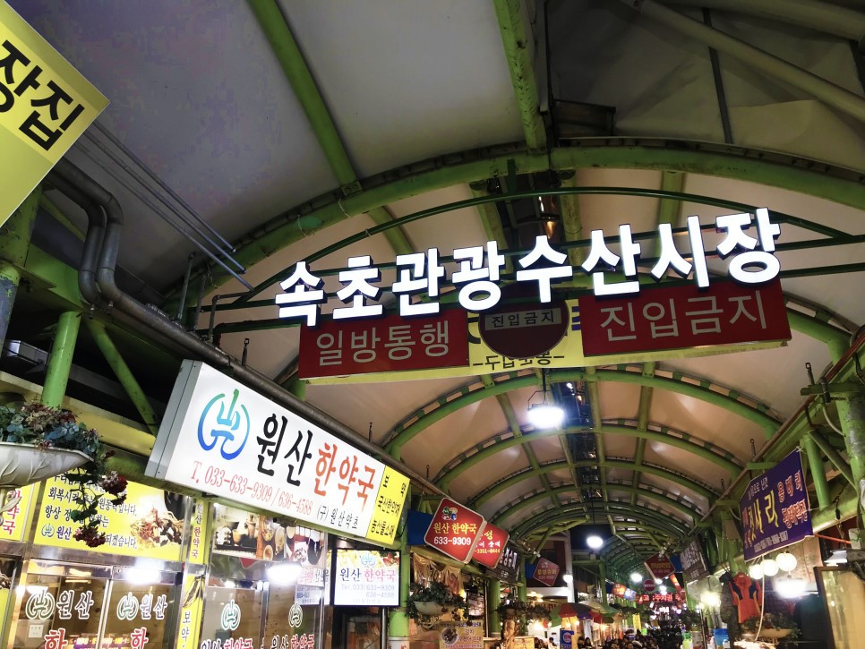 저녁을 먹기 위해 호텔과 20분 거리에 있는 시장에 방문했다. 원래는 닭강정으로 허기를 달래려고 했지만 왠지 속초에서 닭강정만 먹고 가는 것은 손해 보는 기분이어서 아바이순대 전골을 먹기로 했다.