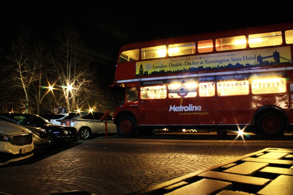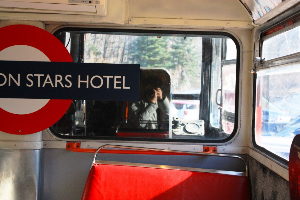 호텔 주차장에는 런던의 2층 버스가 주차(?)되어 있다. 투숙객은 이곳에서 인증샷도 찍고 음료를 마실 수도 있는데 이 버스는 실제로 런던에서 운행되던 버스를 그대로 가져온 것이다.