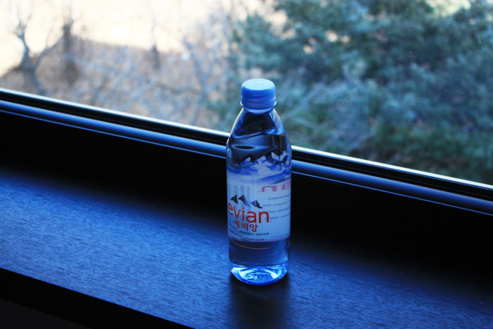 (에비앙을 창틀에 놓고 찍었더니 오버를 약간 더해서 스위스가 따로 없었다)