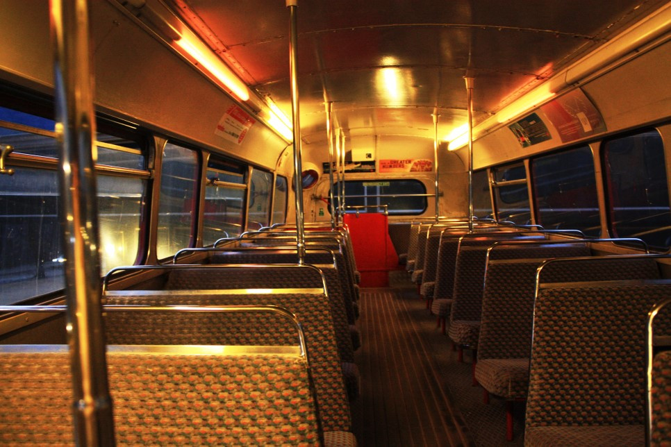 몇 십 년 전에 엔진을 몸에서 떼어낸 이 버스는 런던에서 묻었던 흔적을 그대로 간직하고 있다.