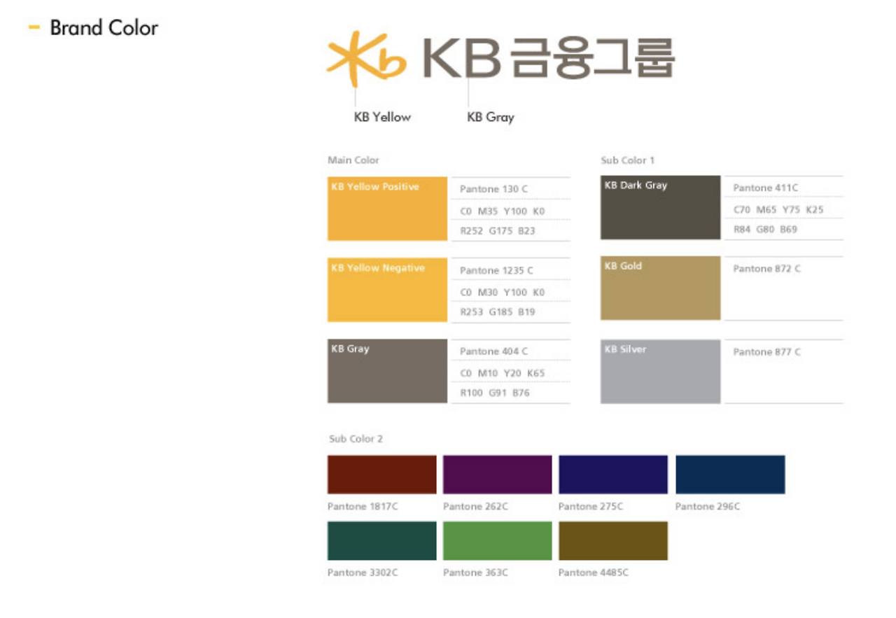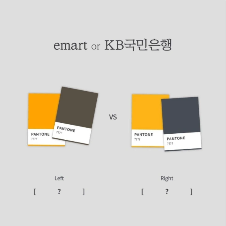 이마트와 국민은행은 메인 컬러가 노란색이기 때문에 동일한 브랜드 컬러를 가지고 있다고 생각할 수 있지만 자세히 보면 메인 컬러인 노란색의 채도가 다르고, 서브 컬러가 완전히 다른 색이어서 두 브랜드가 다른 느낌의 컬러를 가지고 있음을 알 수 있다.