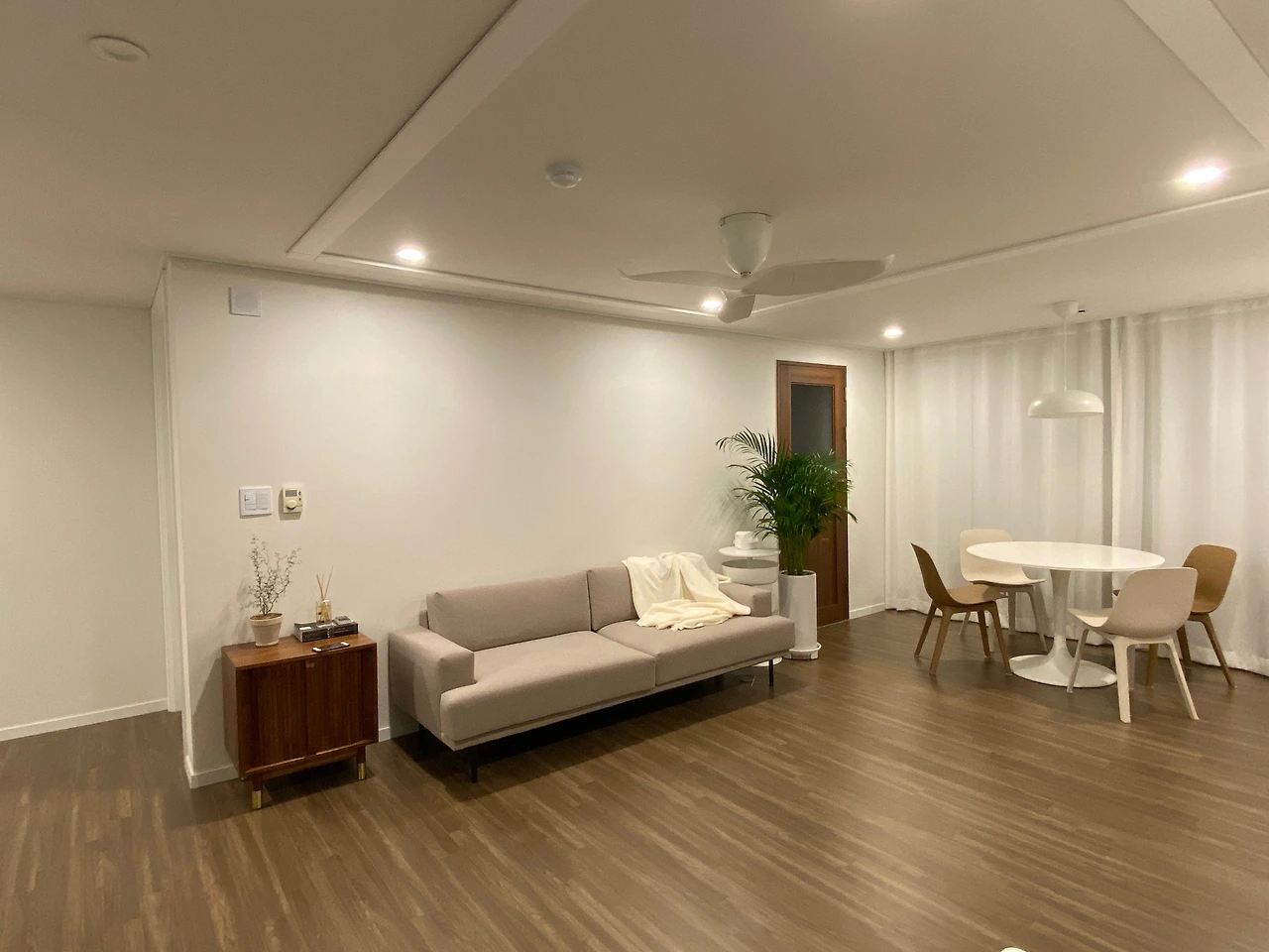 리모델링이 끝나고 멀바우 우드가 멋스럽게 깔린 집을 보니, 잠깐이나마 집이 좁아 보일까 우려했던 생각들이 기우로 느껴질 정도였다.