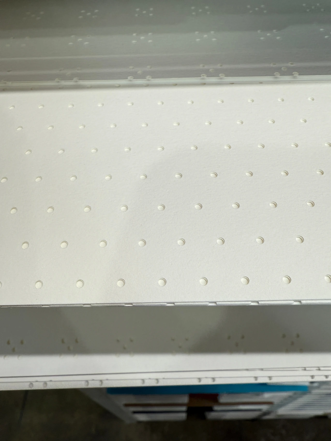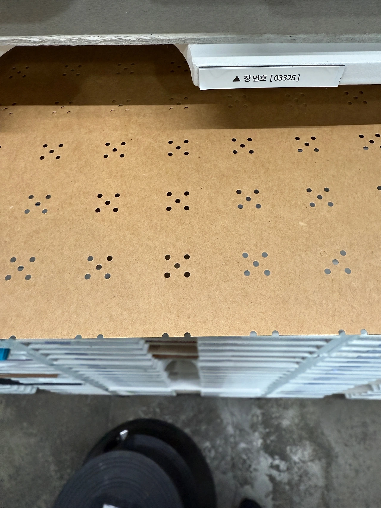 [펜시홀종이]에는 두 가지 패턴이 있었고, 우리는 그중 다섯 개의 구멍이 모여 있는 패턴, ‘디자이너스칼라’를 표지로 사용하기로 했다. 계산대로라면 종이는 최소 30매를 구매해야 했다. 하지만 두성인더페이퍼의 디자이너스칼라 재고가 부족했다. 창고까지 박박 긁어 모아도 25장뿐이었다. 예기치 못한 상황에 우리는 고민에 빠졌다. 표지를 처음부터 다시 검토하기에는 시간이 너무 촉박했다. 두성인더페이퍼를 재방문할 일정적 여유도 없었기에, 그 자리에서 결정을 내려야 했다.