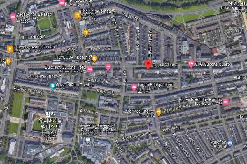 하루는 더블린에서 벨파스트로 북쪽을 향해 1시간 반 정도 버스를 타고 이동했다. 버스에서 내리니 저녁 7시 반인가 했는데, 벌써부터 주위는 어둑어둑해져 있었다. 너무 추워서 버스 온도계를 흘끗 보니 10도인지 14도인지를 가리키고 있었다. 겨울도 아닌데 몹시 춥게 느껴져서, 더블린에서 기념품으로 산 캐시미어 목도리(그 동네는 캐시미어가 특산품이라고 한다)를 목부터 정수리까지 둘둘 둘렀다.
