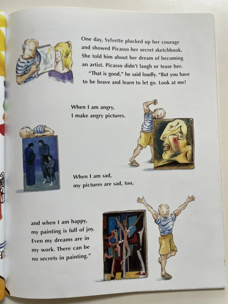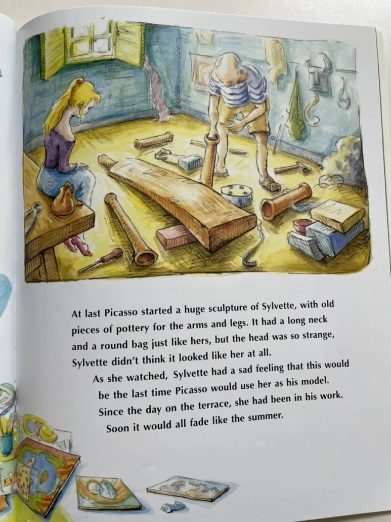 피카소는 실베트에게 영감을 받아 다수의 그림, 조각상을 만들었고 실베트는 피카소 덕분에 조금 더 자신을 드러낼 수 있었고 어린 시절 받았던 상처를 치유하기도 합니다. 이 책은 실베트가 오랫동안 간직한 꿈이었던 화가의 꿈을 이루는 것을 끝으로 마무리가 됩니다.