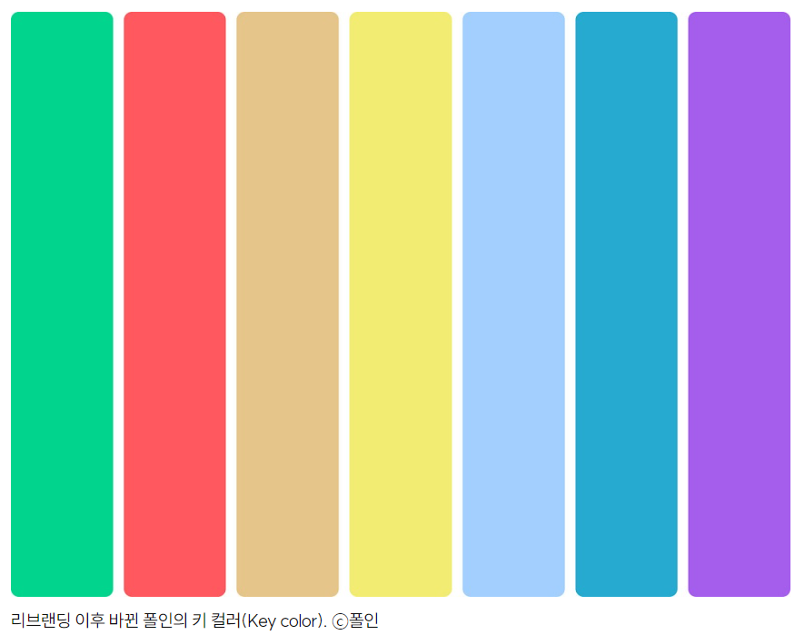 2023년도 하반기에 폴인은 리브랜딩으로 재탄생했다. 직관적으로 봤을 때 가장 달라진 부분은 디자인적인 부분과 콘텐츠의 구성이 달라졌다. 우선 디자인적인 측면을 봤을 때 조금 더 화사해진 느낌을 받았다. 폴인이 리브랜딩 된 후 조금 더 적극적으로 서비스를 이용했기 때문에 리브랜딩 전의 디자인을 눈여겨보진 않았지만 확실히 전반적인 브랜드 느낌이 밝아지고 생동감 있는 느낌으로 변화했으며 홈페이지 디자인도 전보다 더 간결해진 느낌을 받았다. 폴인의 리브랜딩 이야기를 담은 아티클에서 리브랜딩을 진행한 디자이너분들은 이렇게 말했다.