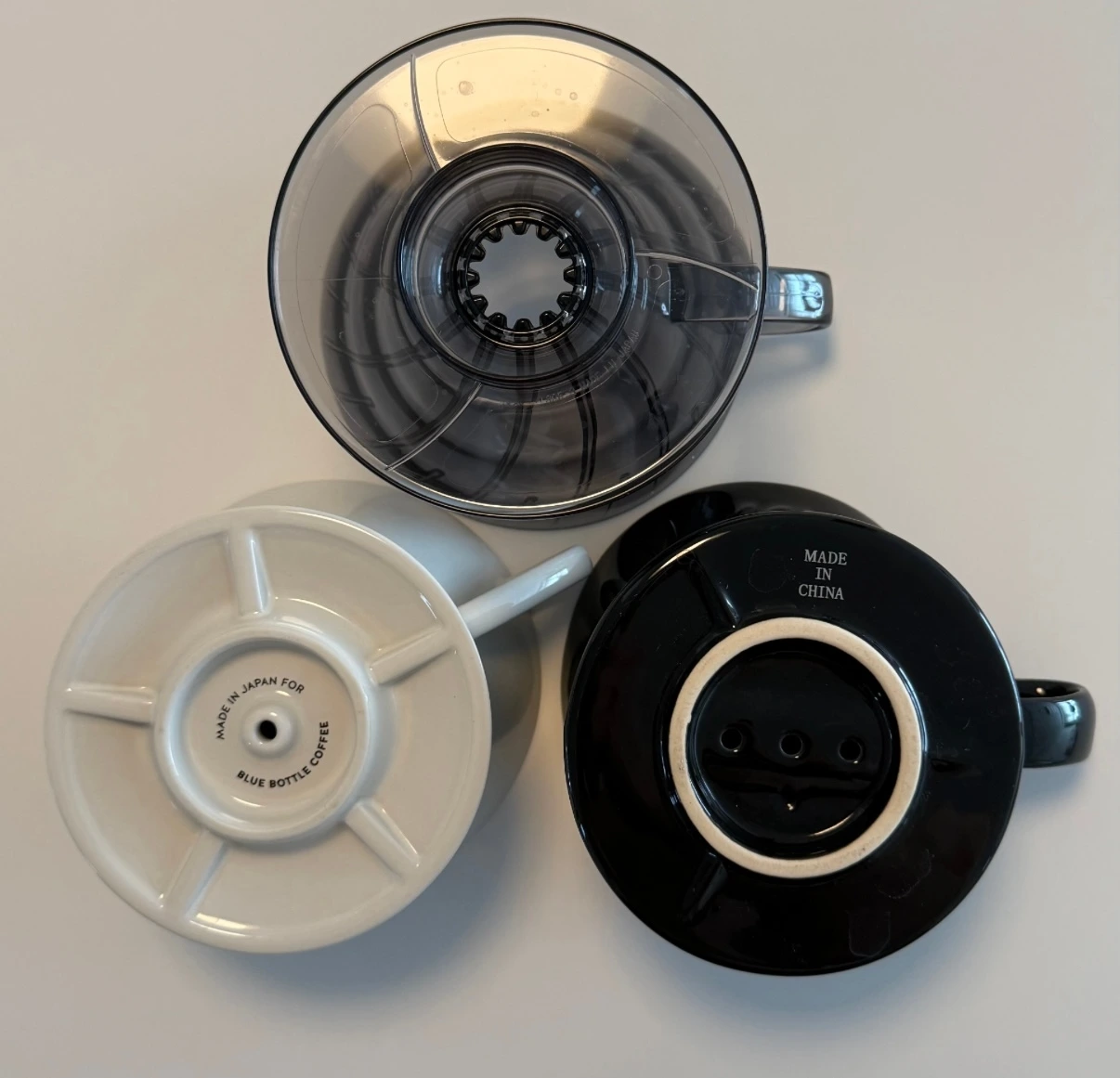 블루보틀 드리퍼는 하리오보다는 물빠짐 구멍이 좁다. 그래서 이와 달리 하리오와 칼리타의 중간쯤에서 맛을 잡아준다.