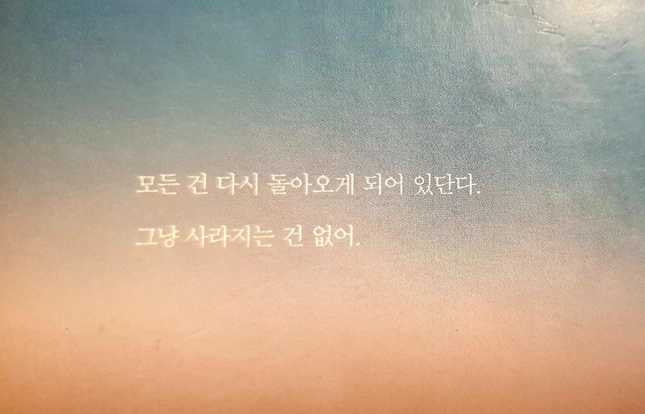 이런 아름다운 순간들은 절대 나 혼자로는 만들어질 수 없는 것들이지. 너와 나의 마음 사이에서만 발생할 수 있는 것들이야. 이 세계가 연결되어있다는 건 그런 점에서 유효해. 전해지지 않는 이야기들은, 우리의 비밀 같은 마음은 언젠가 너와 나 사이로 돌아올 거야. 사라지지 않아. 그런 게 잭슨 여사가 말한 '좋은 일'이란 걸 테지. 그걸 기다리고 있어. 이만 줄일게.